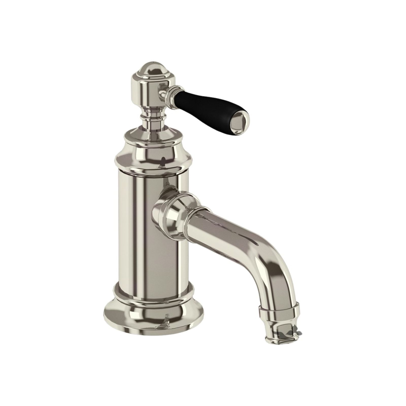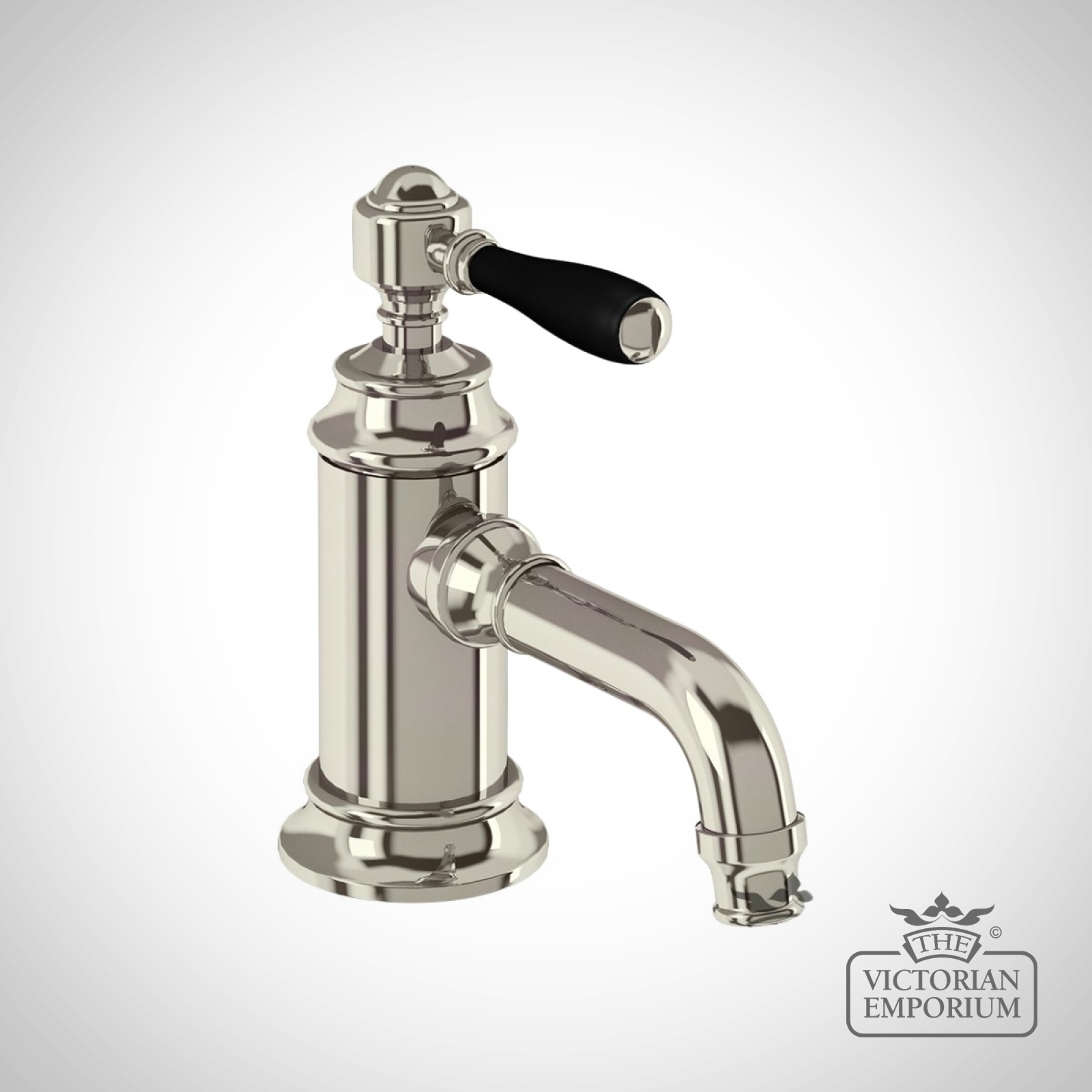 Single-lever basin mixer without pop up waste with black lever in chrome or nickel