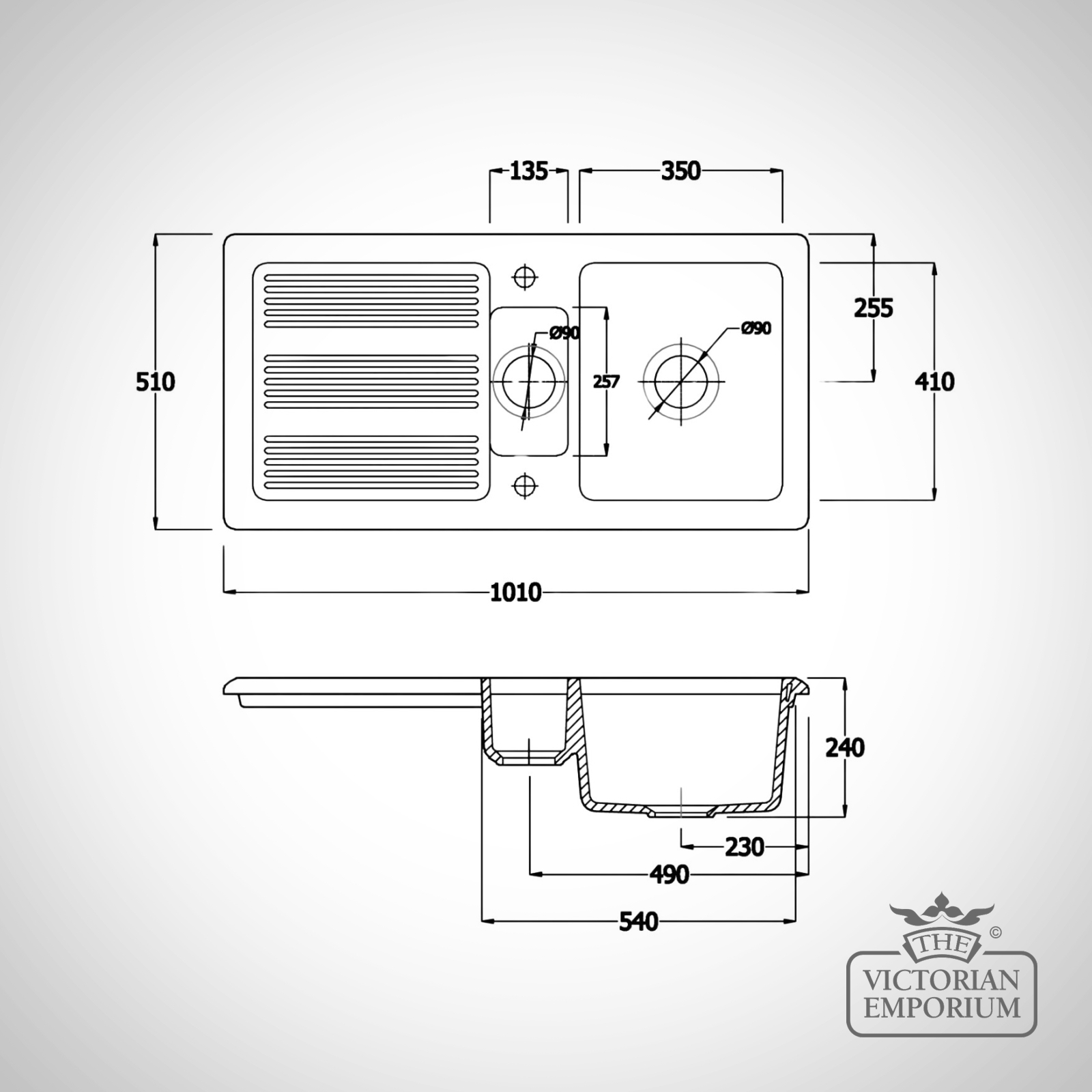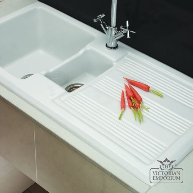 Inset Sink with centre small sink and thin rib drainer (reversible)