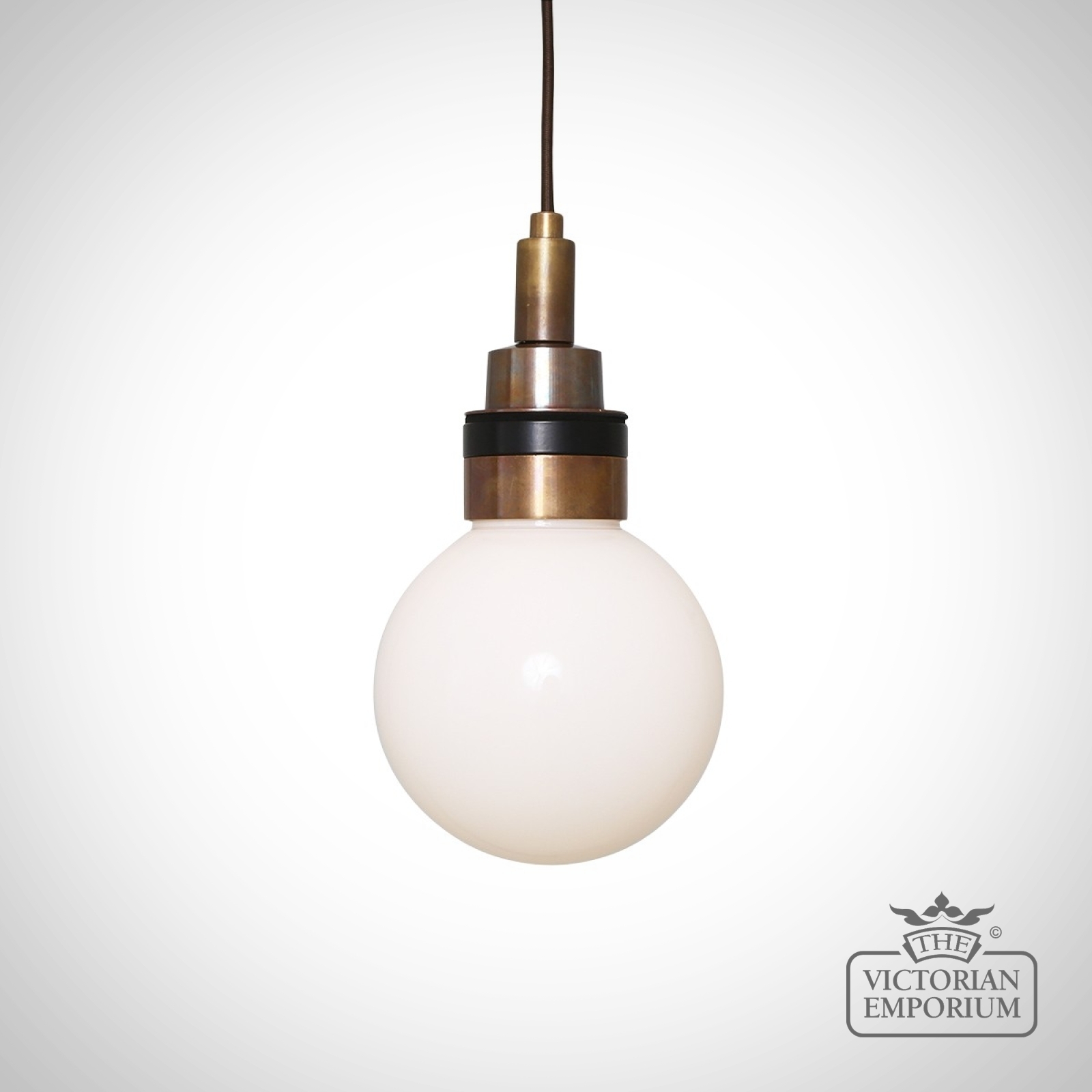 This glass globe bathroom pendant light adds a decorative touch to bathrooms and has a choice of glass globe shades; clear, opal and prismatic. The Loch brass and glass bathroom pendant light is versatile in design. Rated IP65, the brass pendant is suitable for where moisture exists, such as bathrooms and wet rooms.