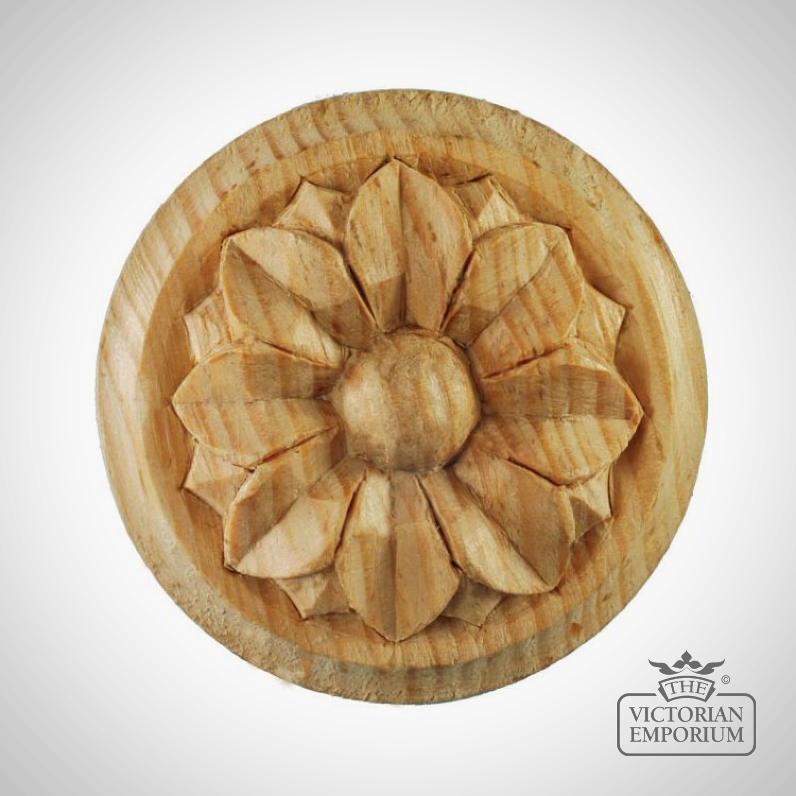 Pretty rosette Hand Carved in Pine wood as one piece onto a circular plinth.
