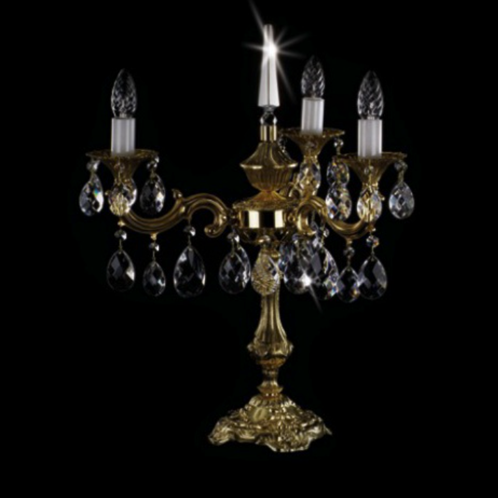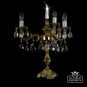 Charming cast crystal table lamp with an ornate frame and large oval lead crystal drops.