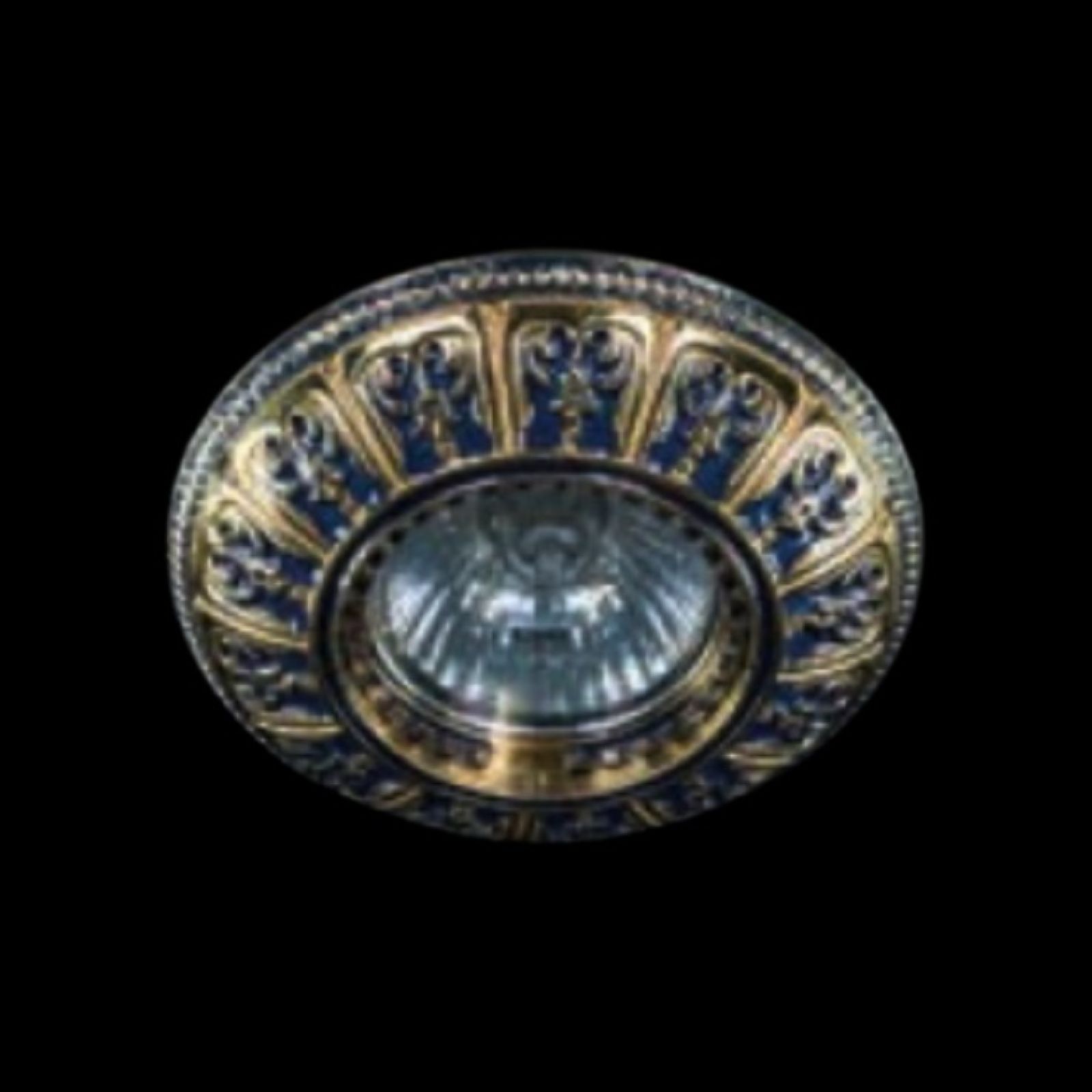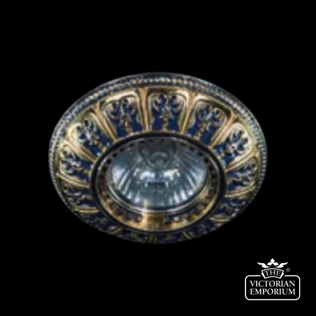 Beautiful spotlight design, with blue and gold pattern to add period style to ceilings. Suitable for most areas especially low ceilings that require a bit of glamour.