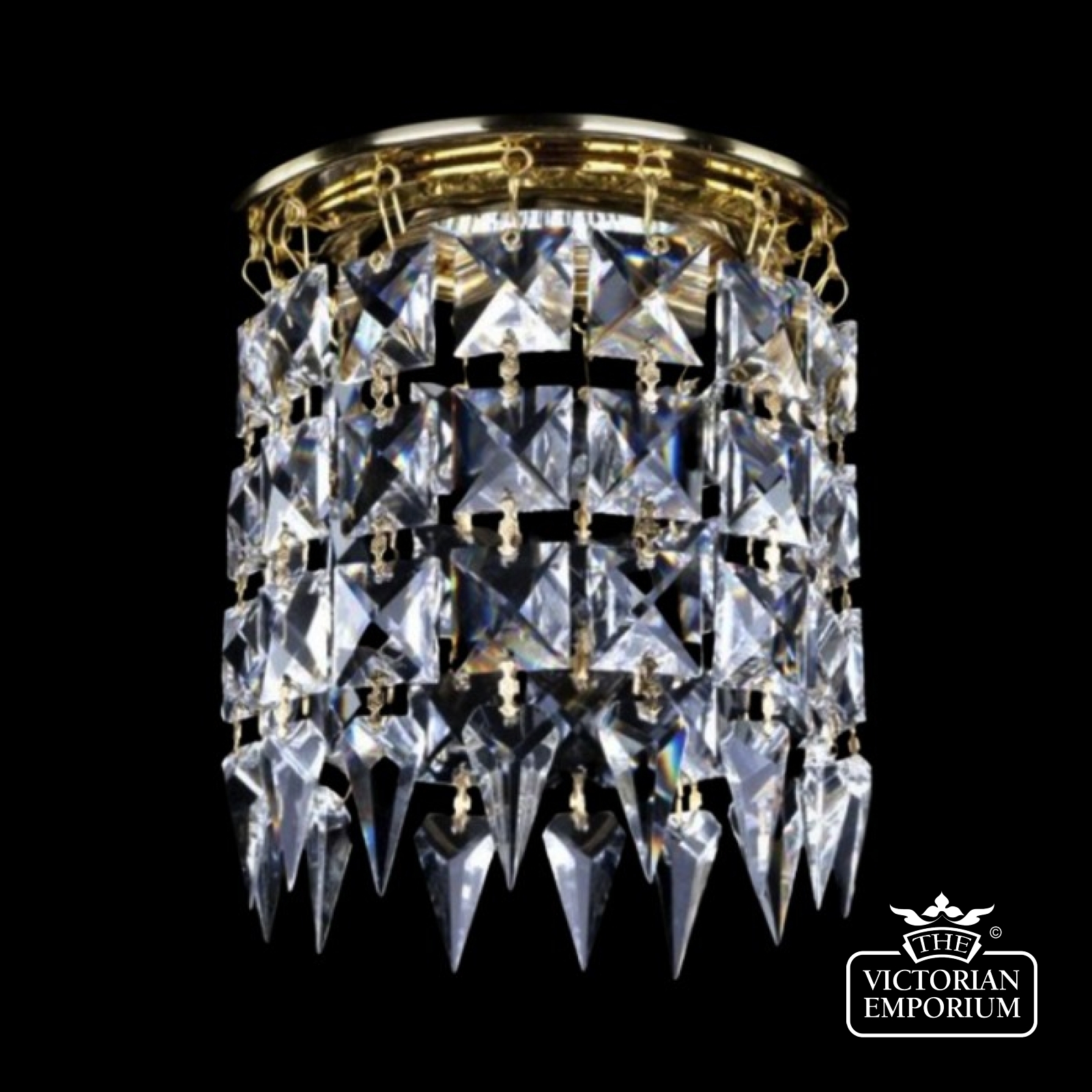 Delicate crystal squares that hang down from the spotlight and end with tear drops reflect with the light to create colours of the spectrum in this stunning spotlight. Add a touch of luxury to any area.