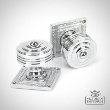 Square Highly Decorative Mortice Knob Set in Polished Chrome
