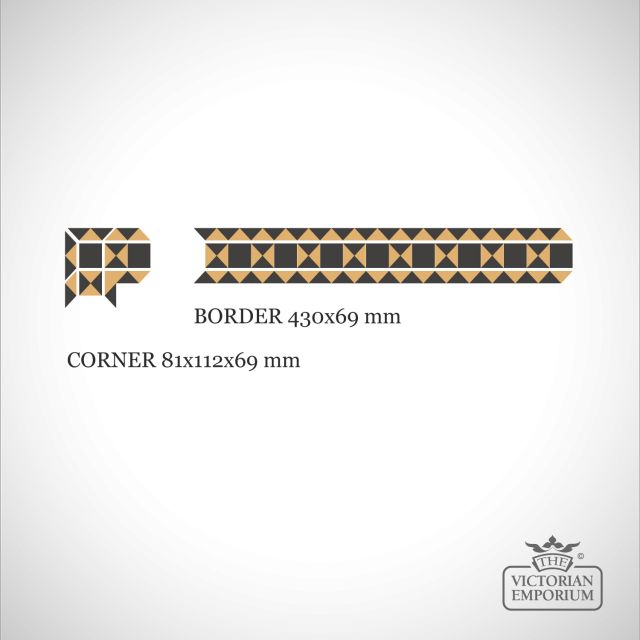 St Sepulchre pattern border and corner tiles match St Sepulchre Centre Pattern tiles. On webbed sheets for fast and hassle free installation.