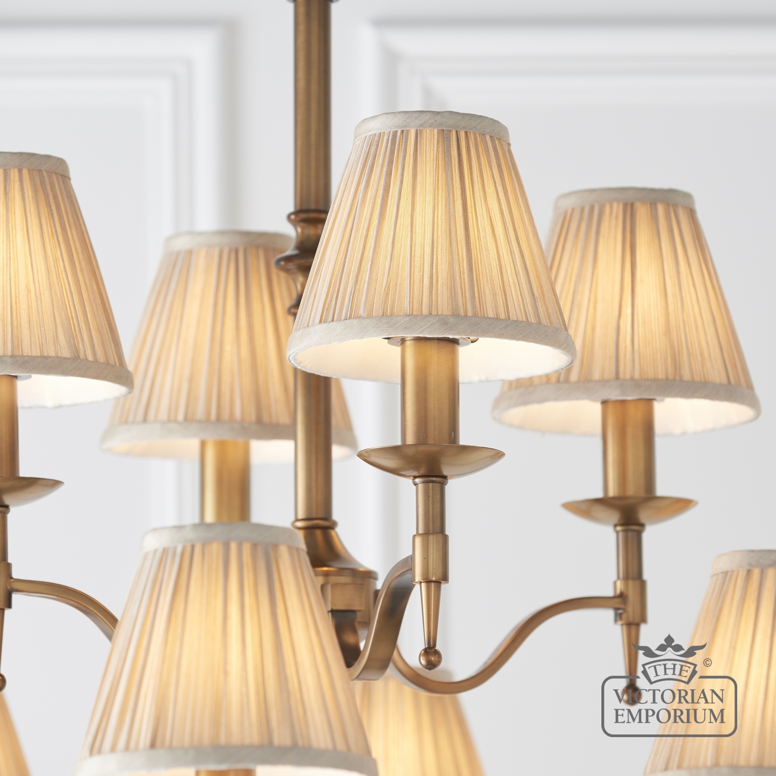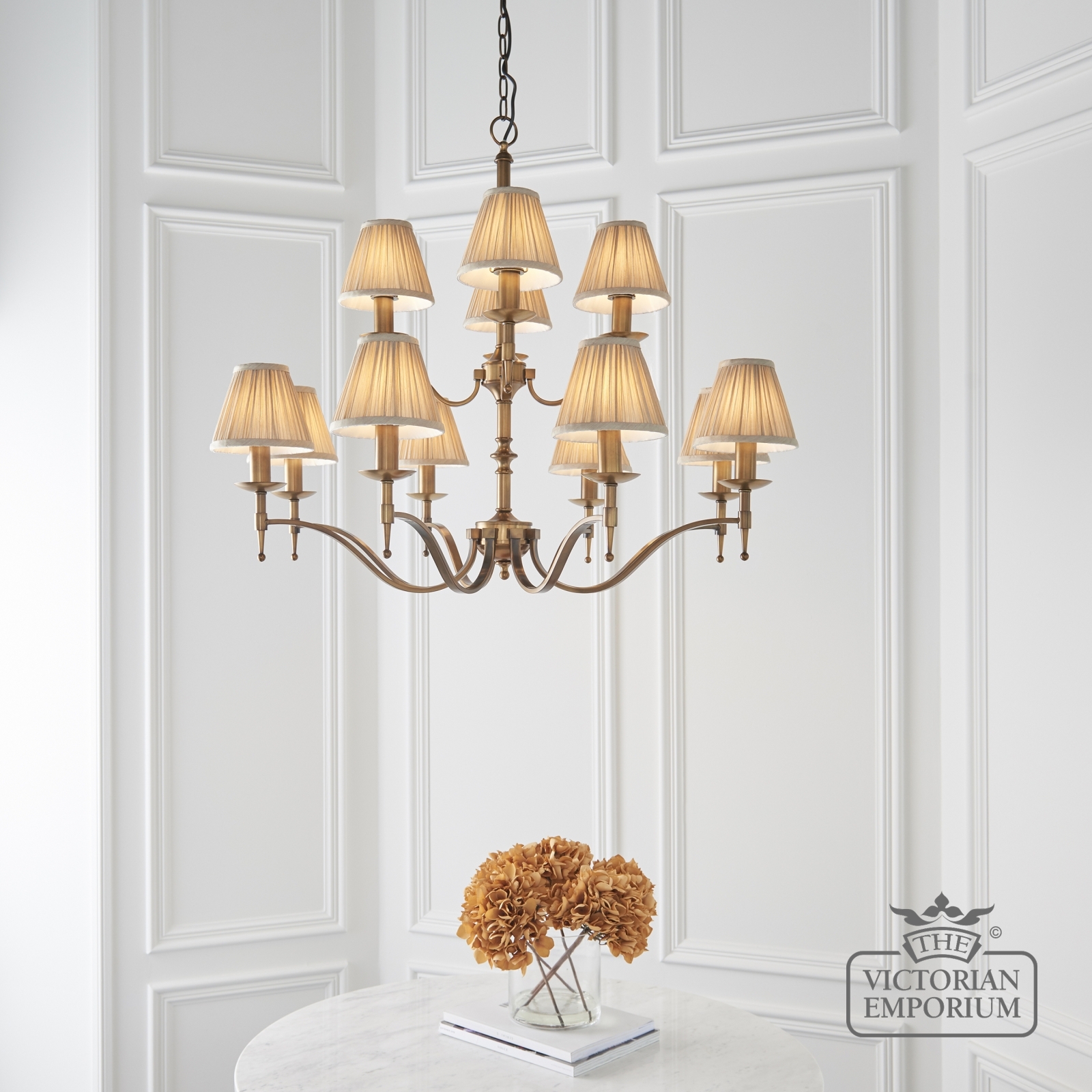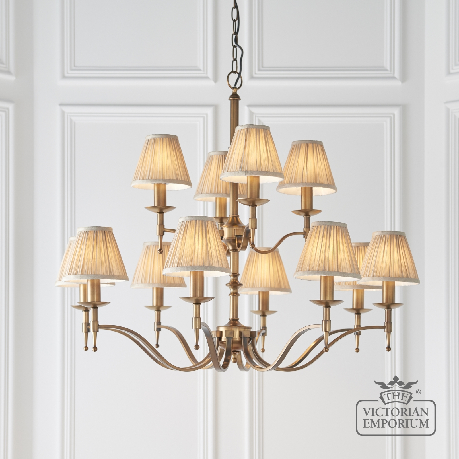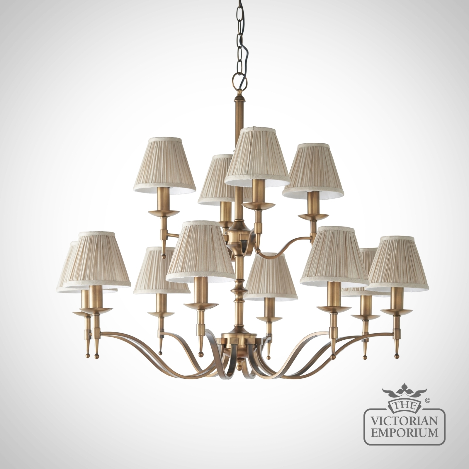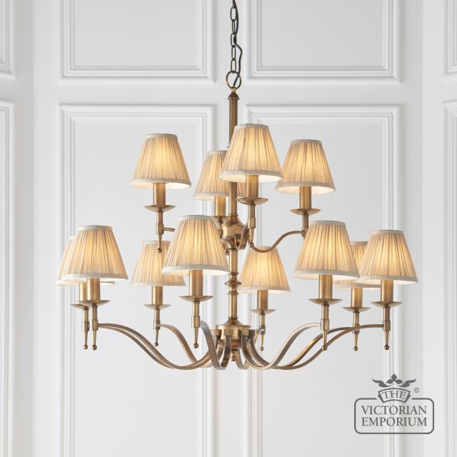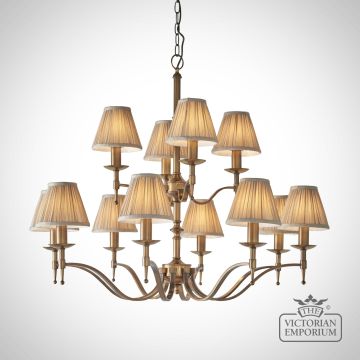 Unfortunately the product Stanford Antique Brass 12 Light Ceiling Pendant With Beige Shades isn't available at this time.
