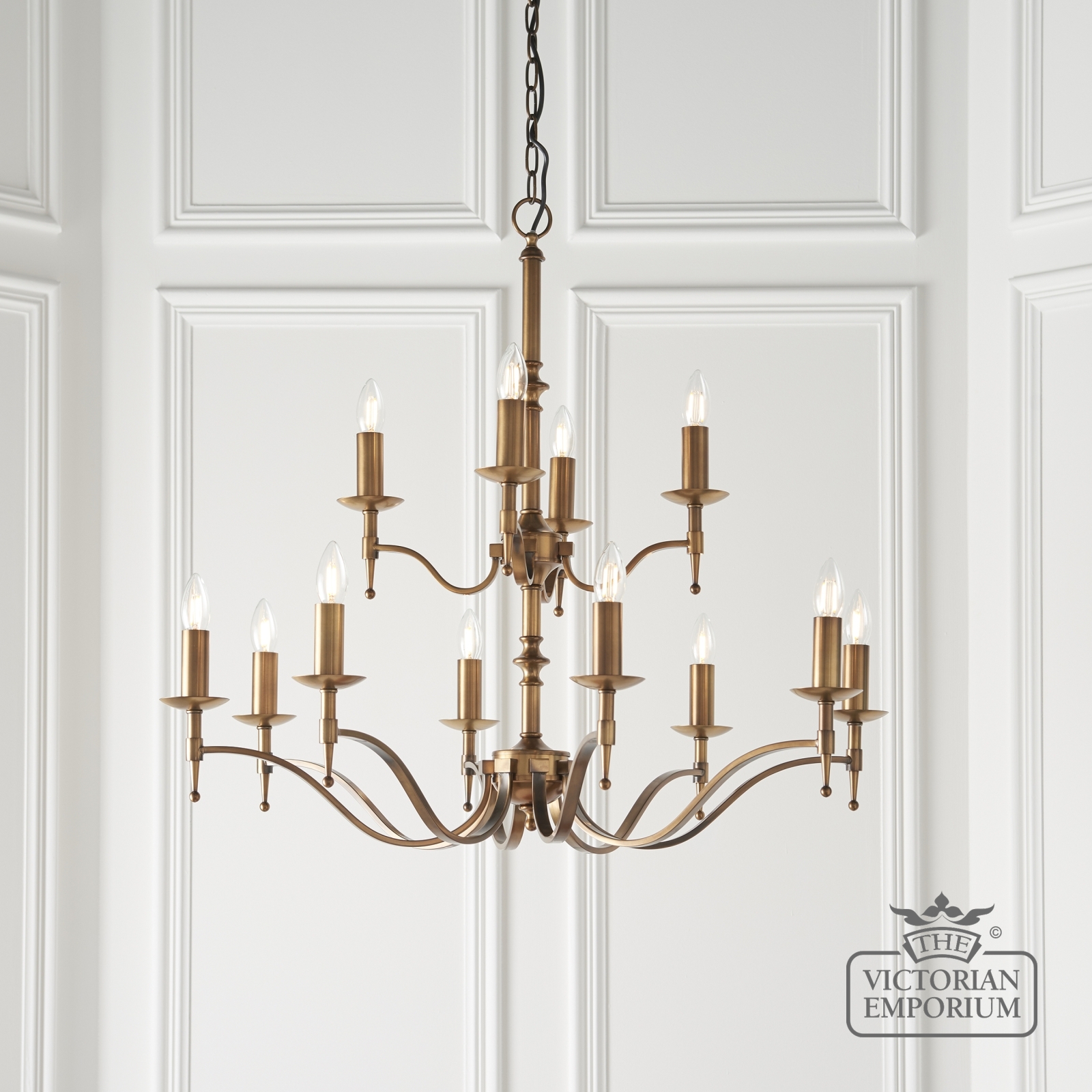 Stanford antique brass 12 light ceiling pendant 63626 1