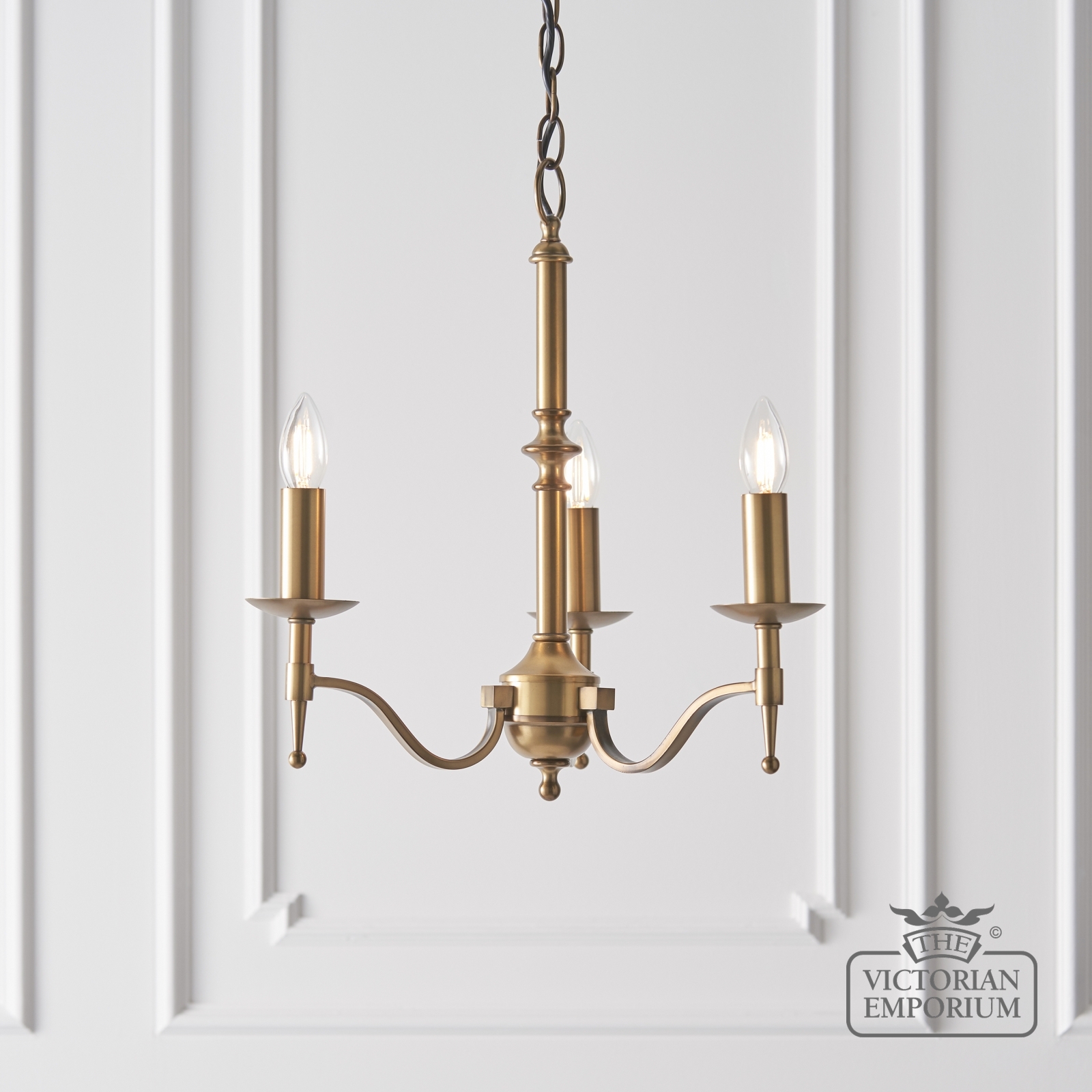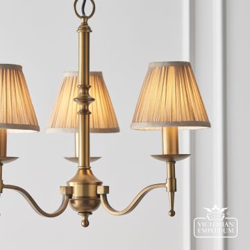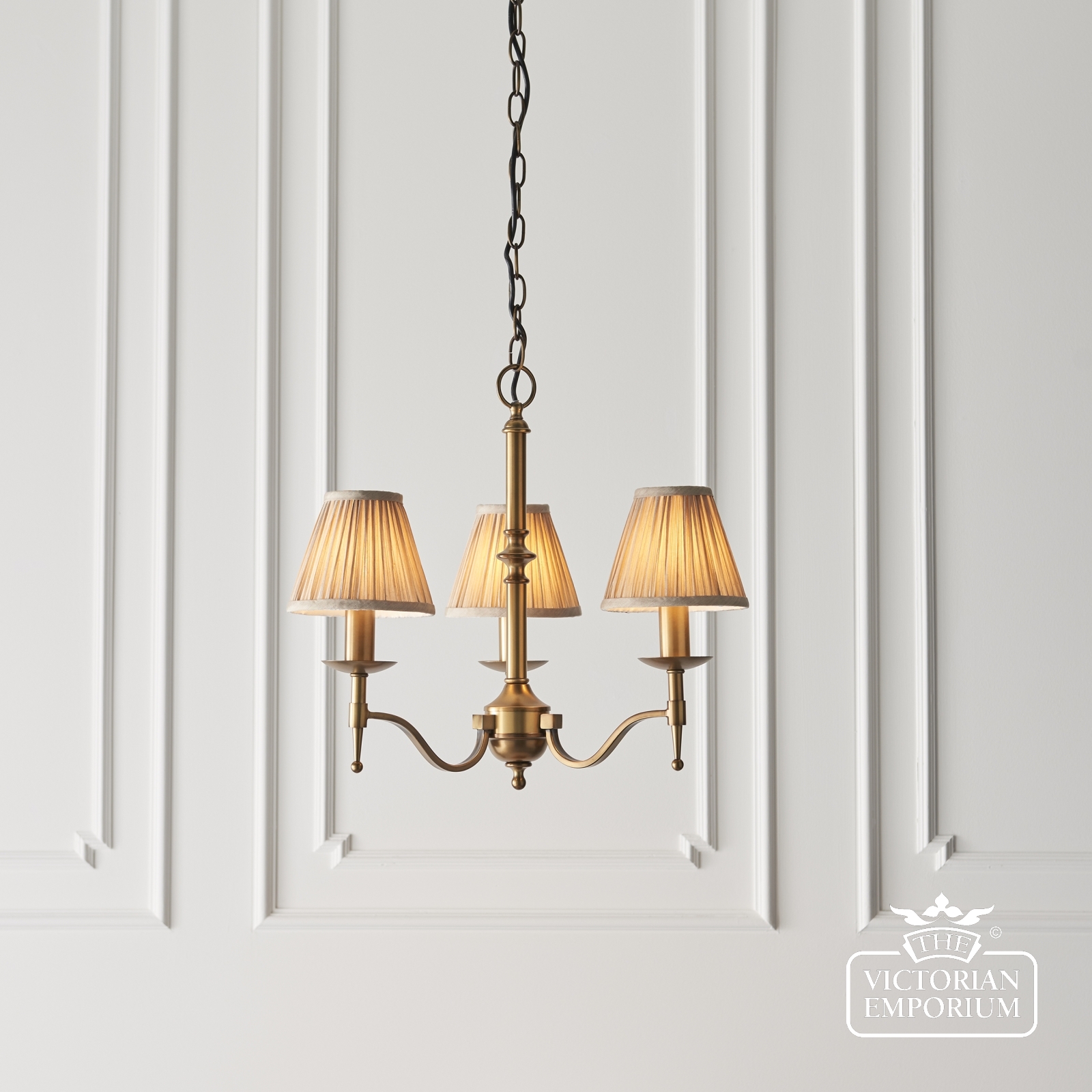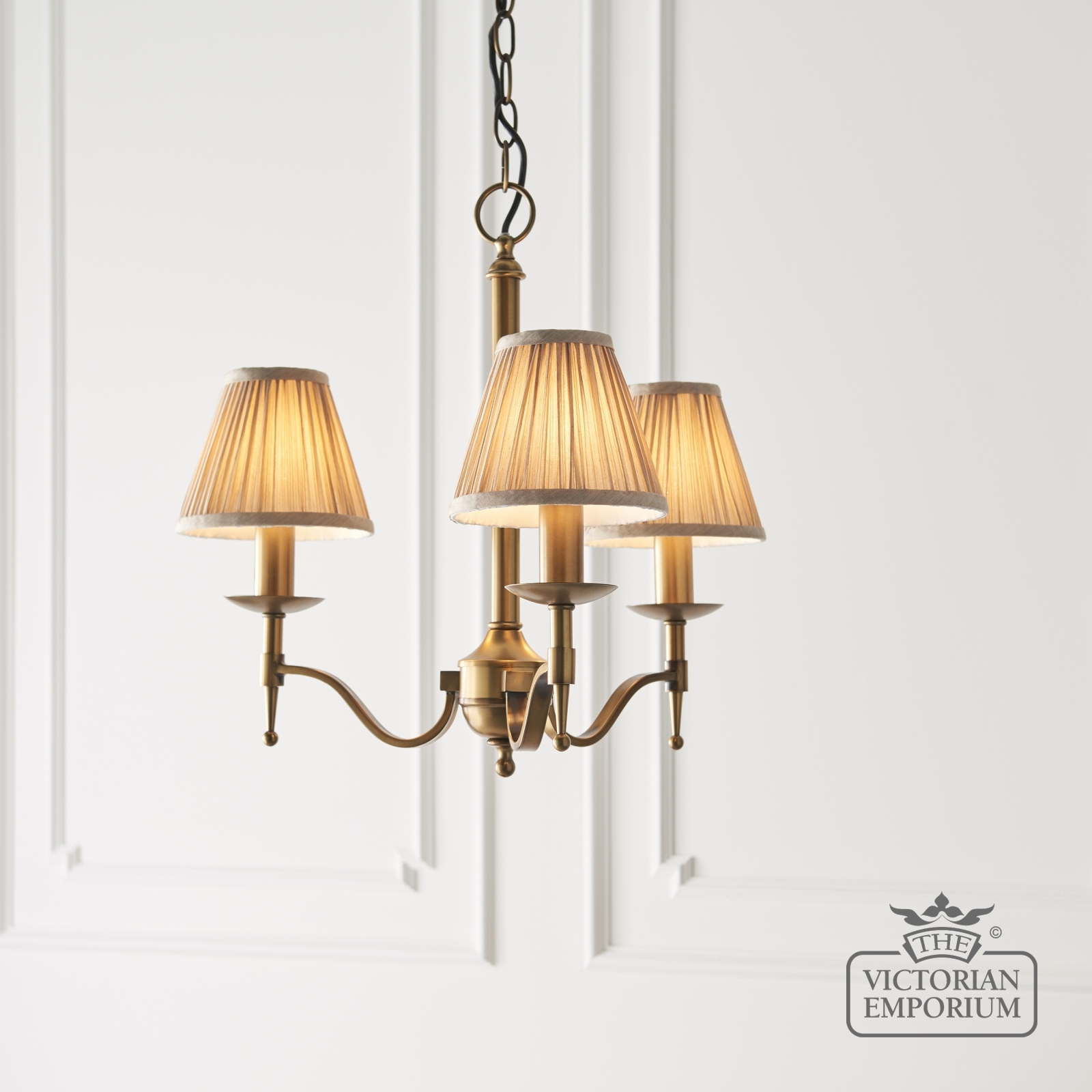 Stanford Antique Brass 3 Light Ceiling Pendant With Or Without Beige Shades