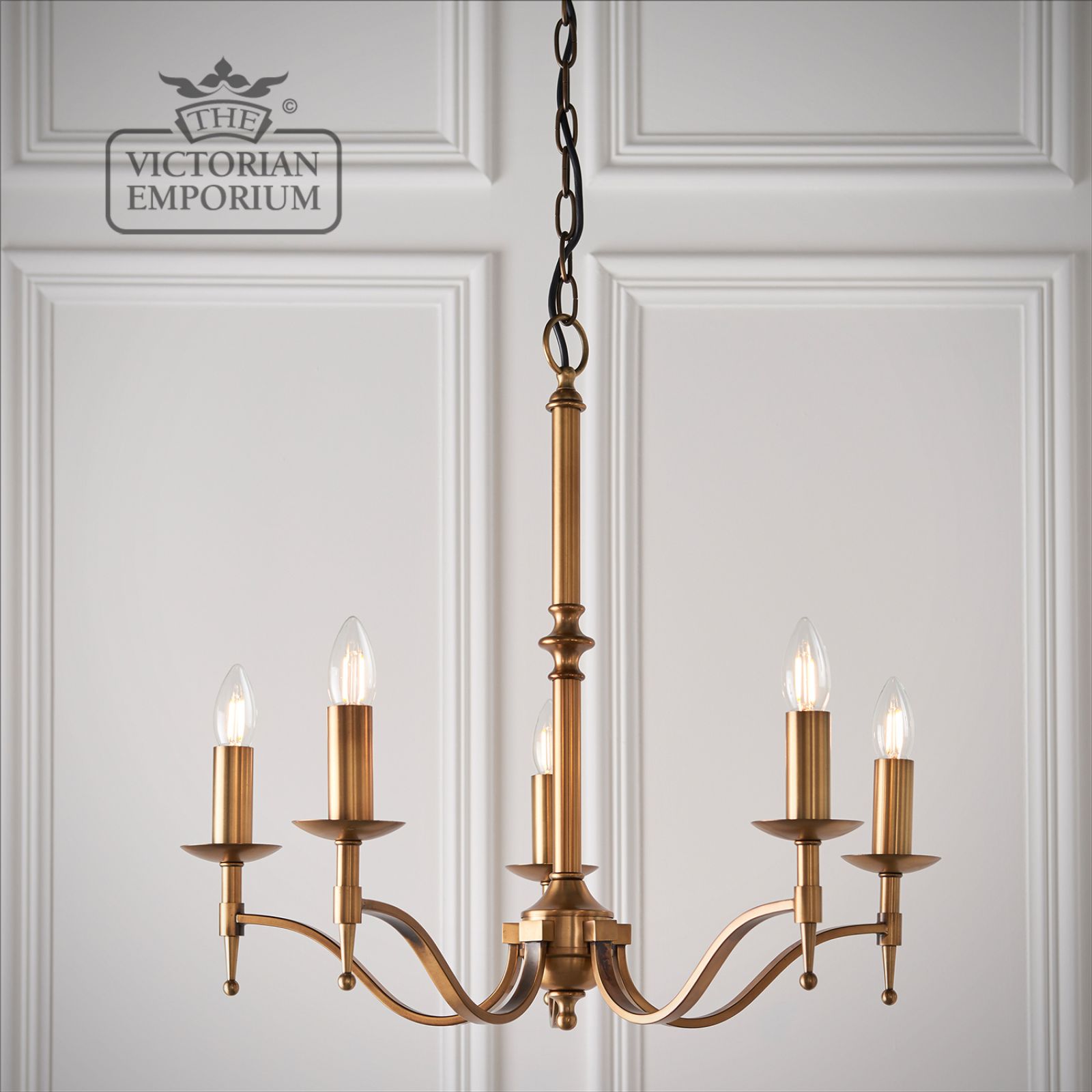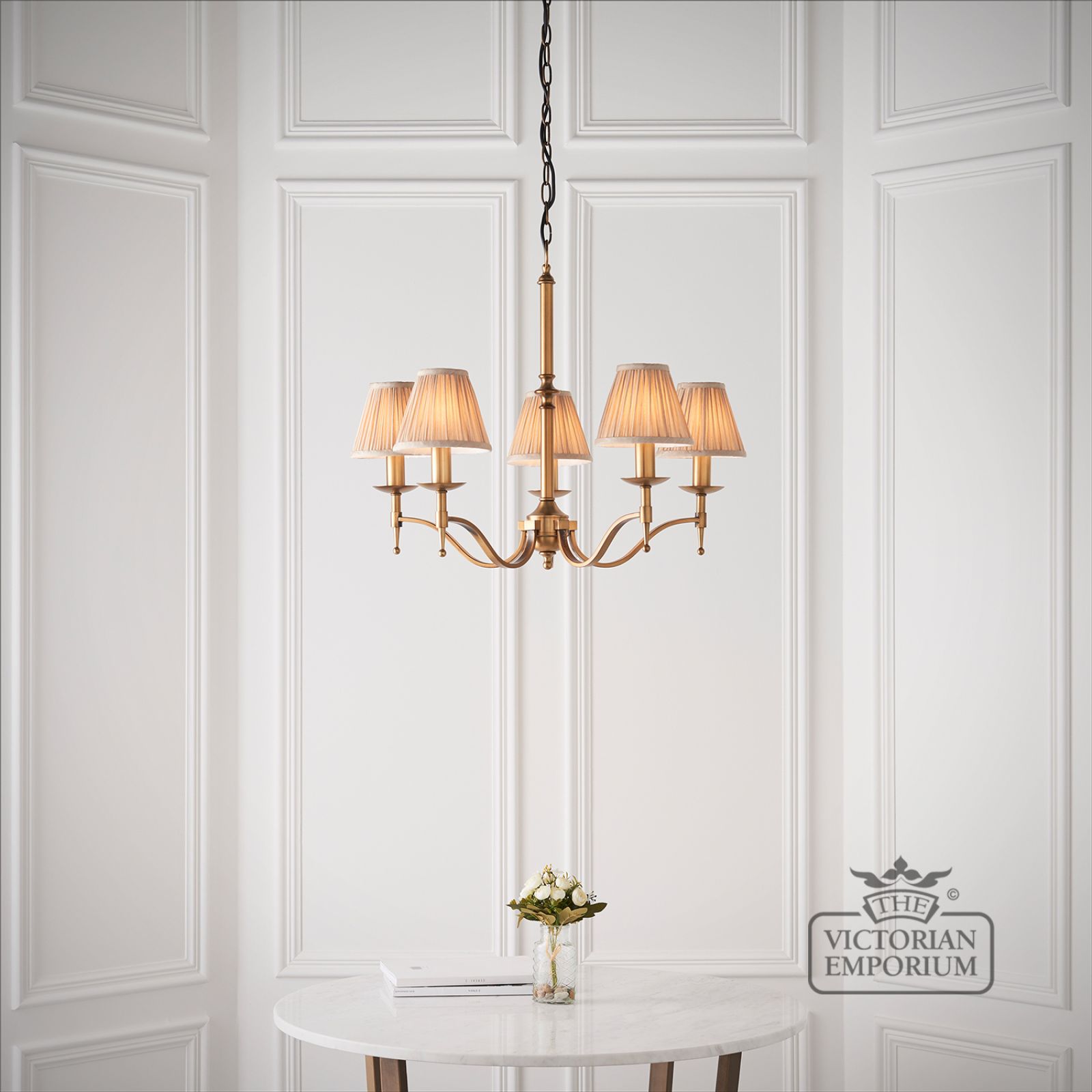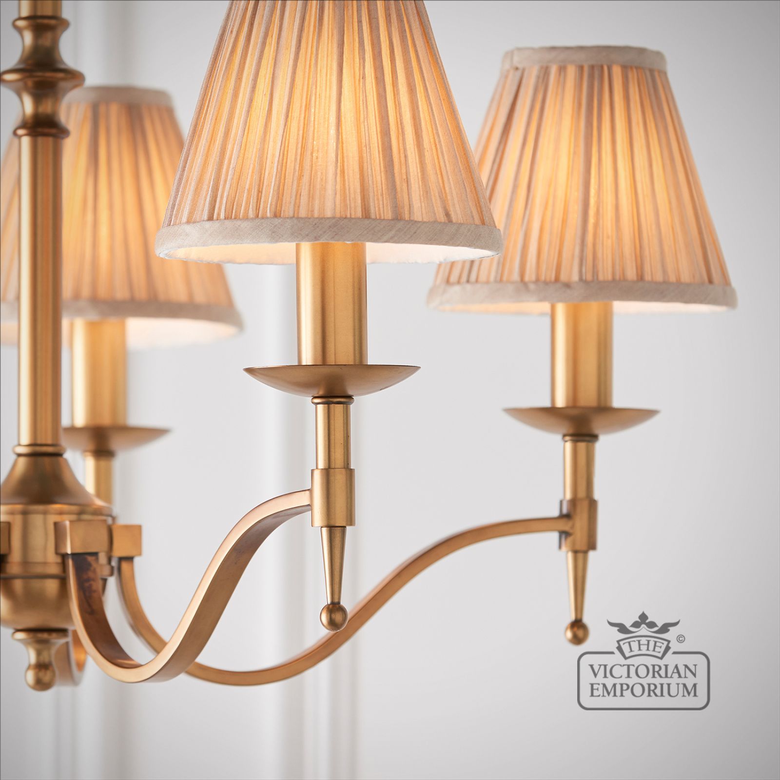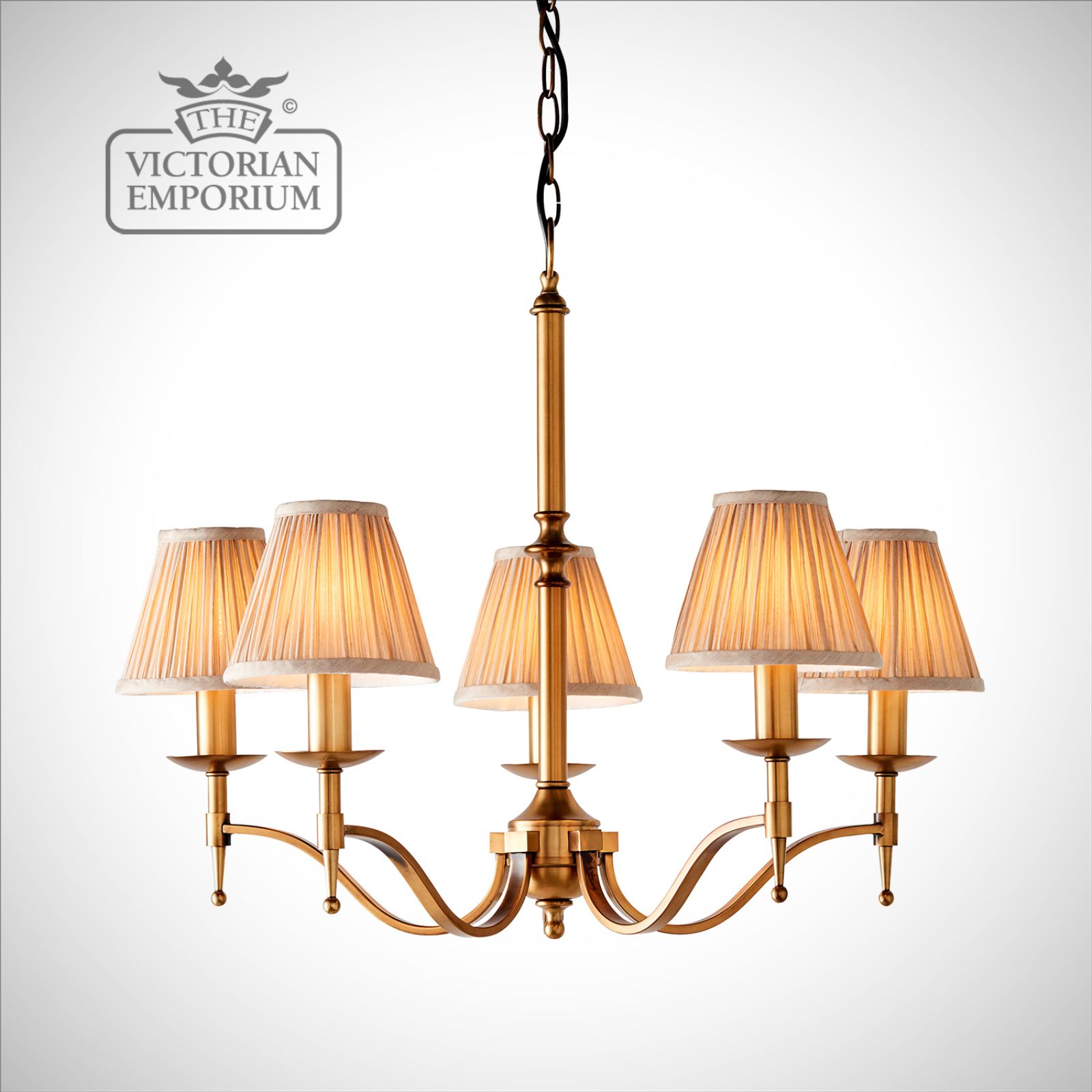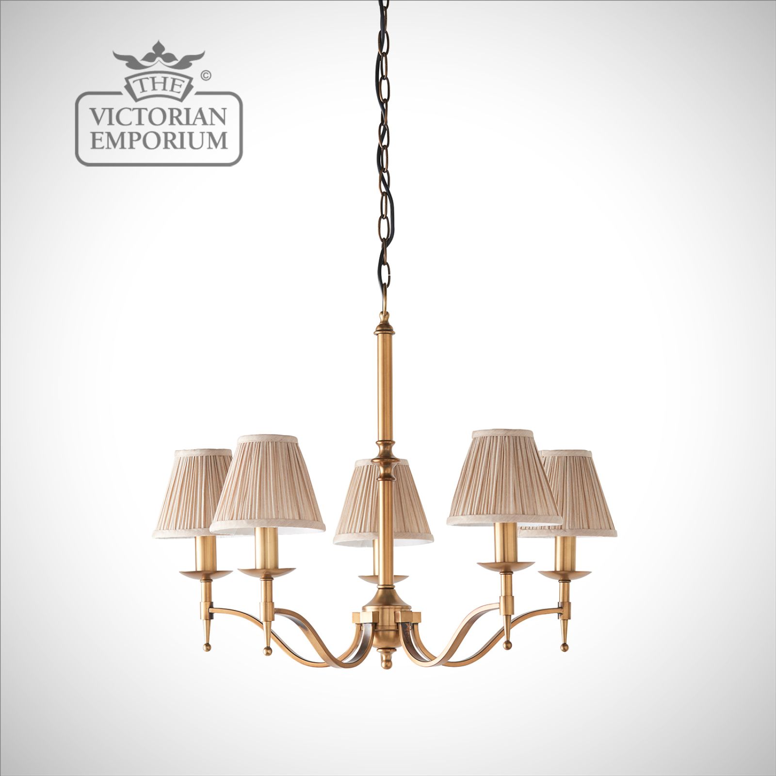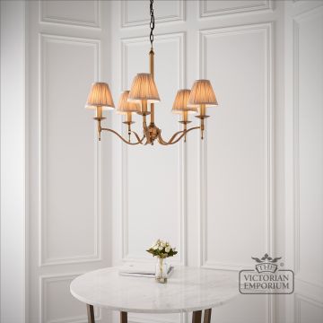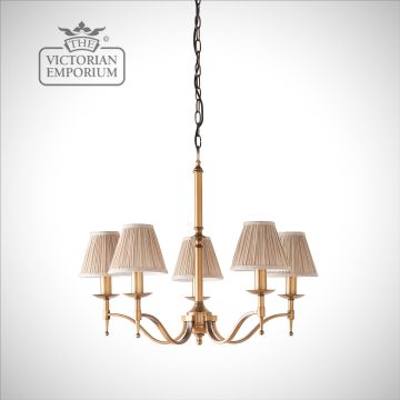 Stanford antique brass 5 light ceiling pendant with or without beige shades