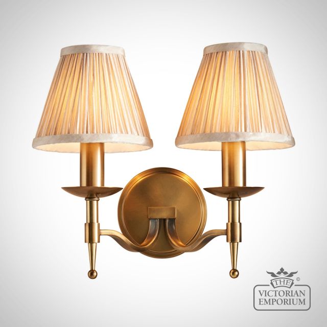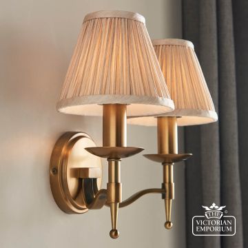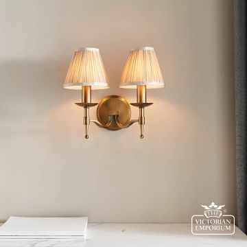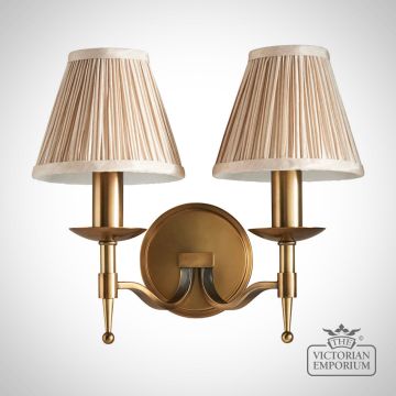Stanford Antique Brass Double Wall Light With Or Without Beige Shades