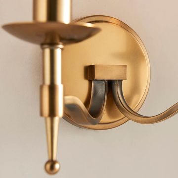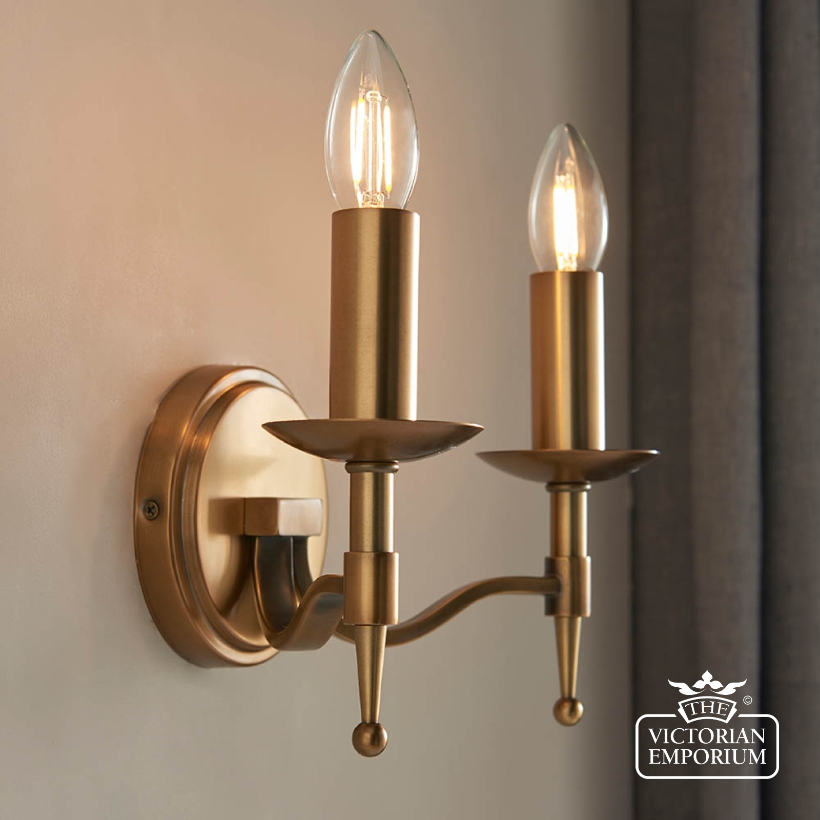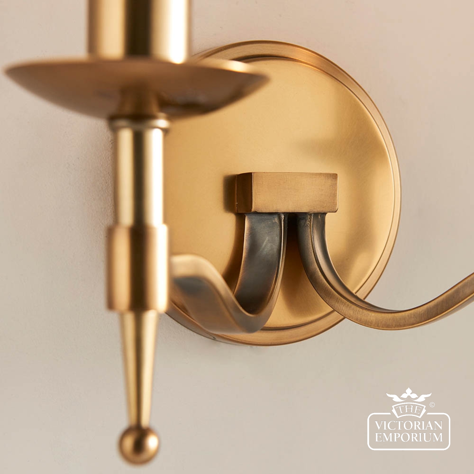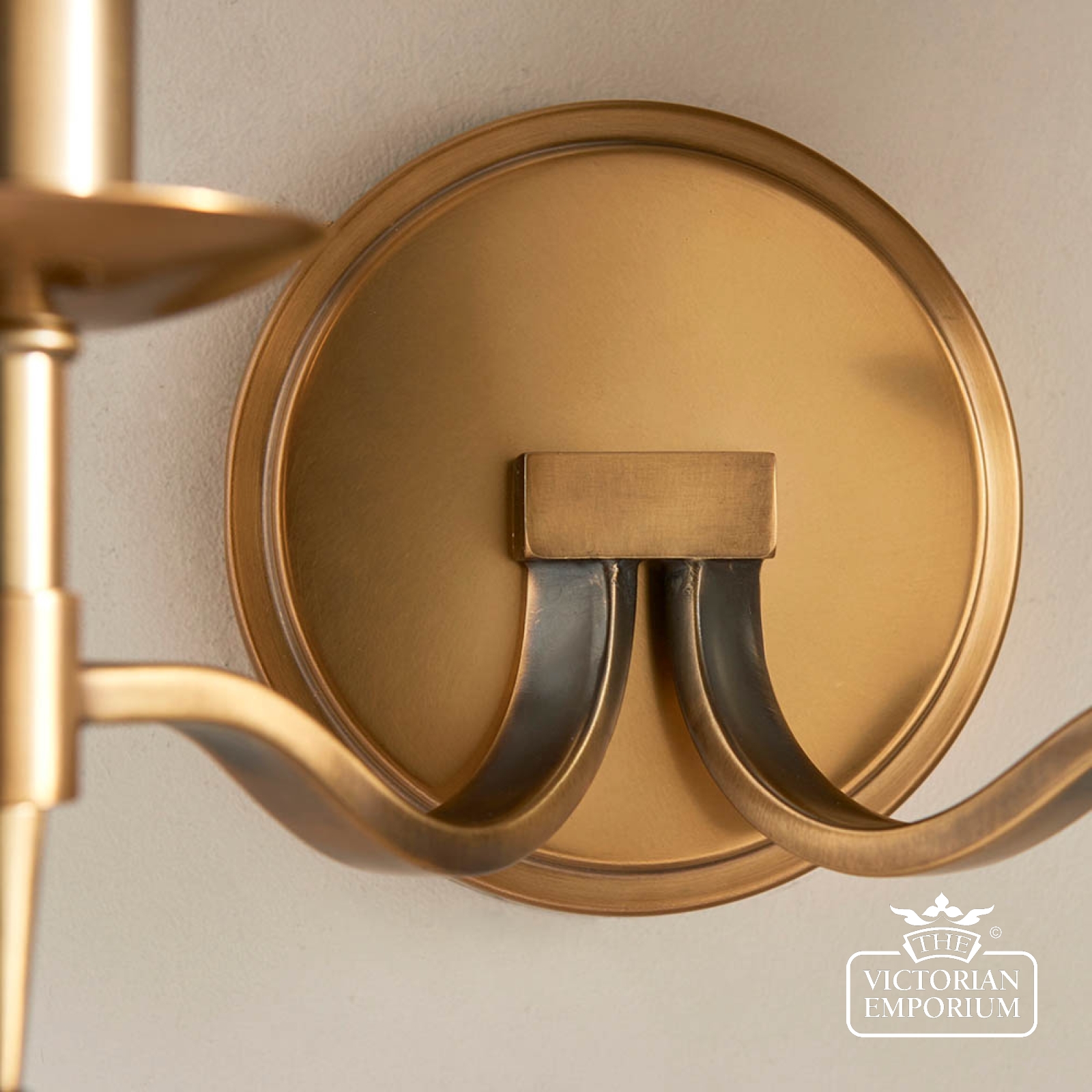 This elegant wall light from the Stanford antique brass range has beautifully curved arms and simple clean detailing.