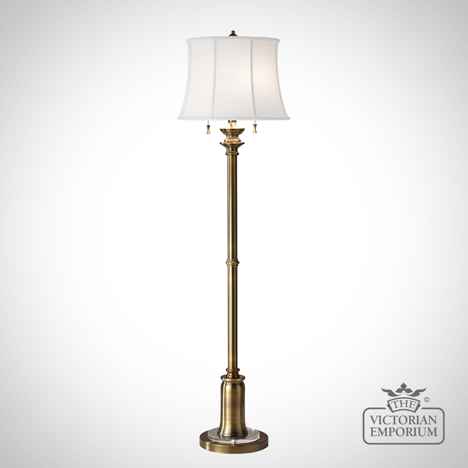 Stateroom Brass Floor Lamp with White cotton linen shade