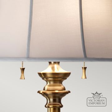 Bali Brass floor lamp including White cotton linen shade suitable for living rooms, dining rooms and bedrooms giving an elegant source of soft light.