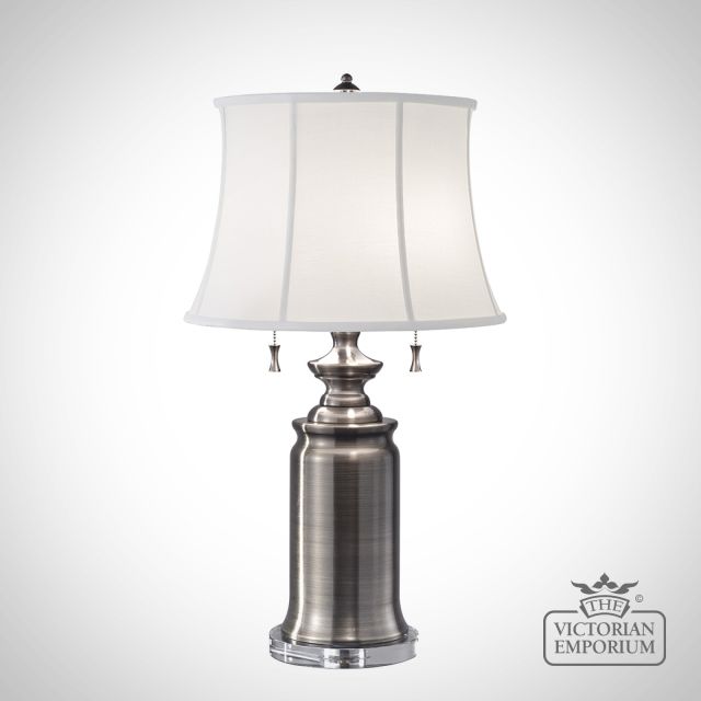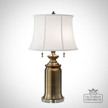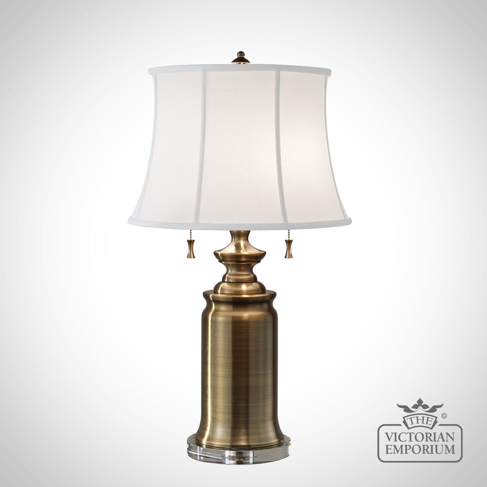 Bali Brass table lamp including White cotton linen shade suitable for living rooms, hallways and bedrooms giving an elegant source of soft light.