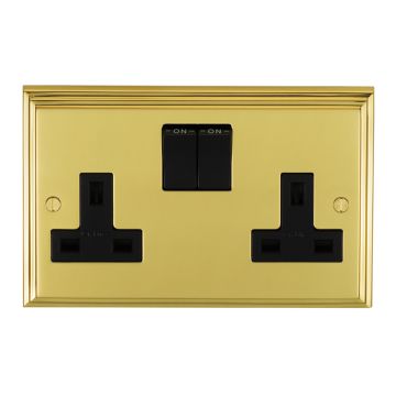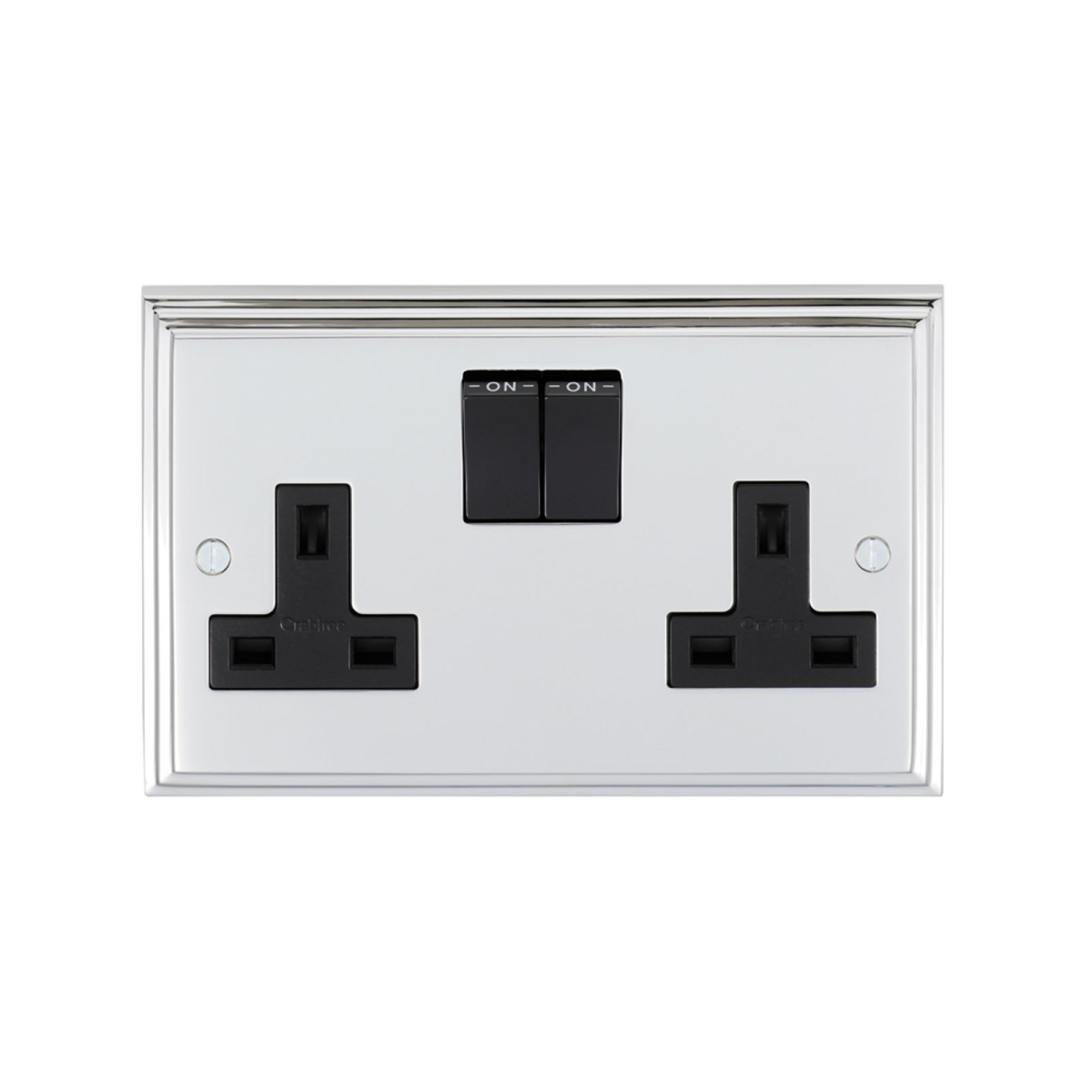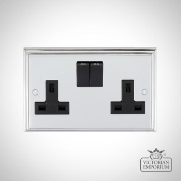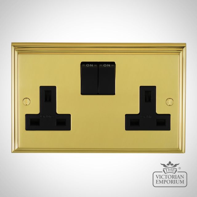 Stepped 2 gang 13 amp DP switched socket in brass or chrome or satin chrome, with matching switches or black or white switches and surround