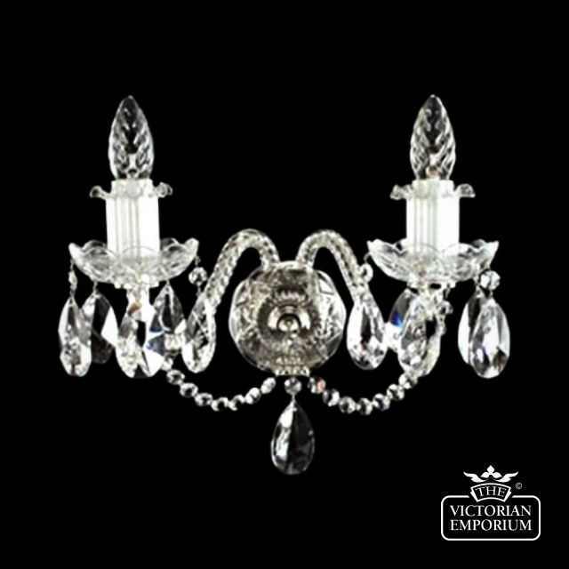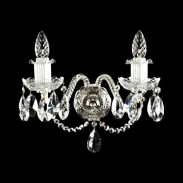 Stunning 2 Arm Wall Sconce, 30%PbO bohemian crystal, with rope twist glass arms, opaque glass candle holders rimmed clear glass flutes and ornate glass bobeches