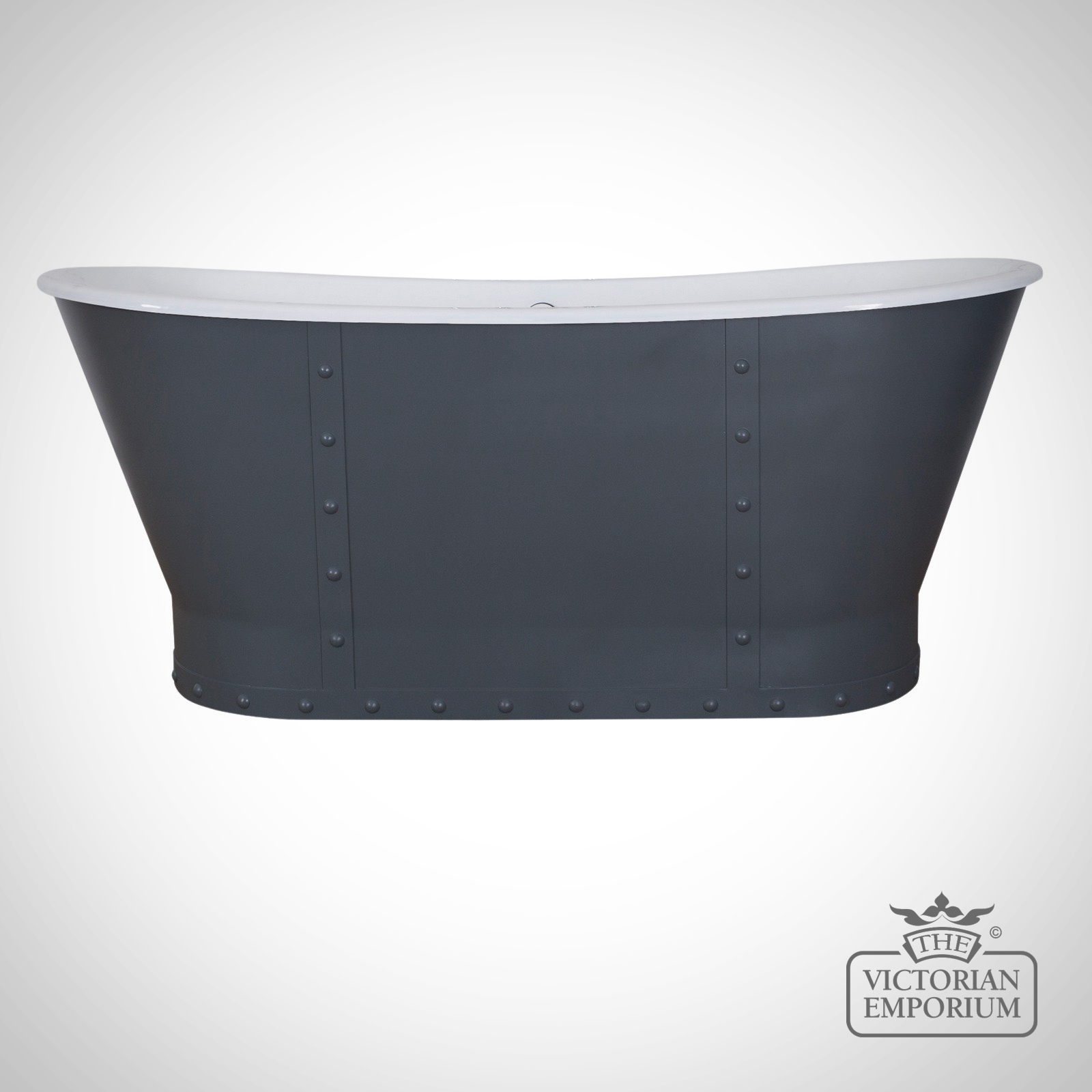 The Sudbury steel skirted cast iron bath is available without tap holes and can be painted any colour of your choice on the outside