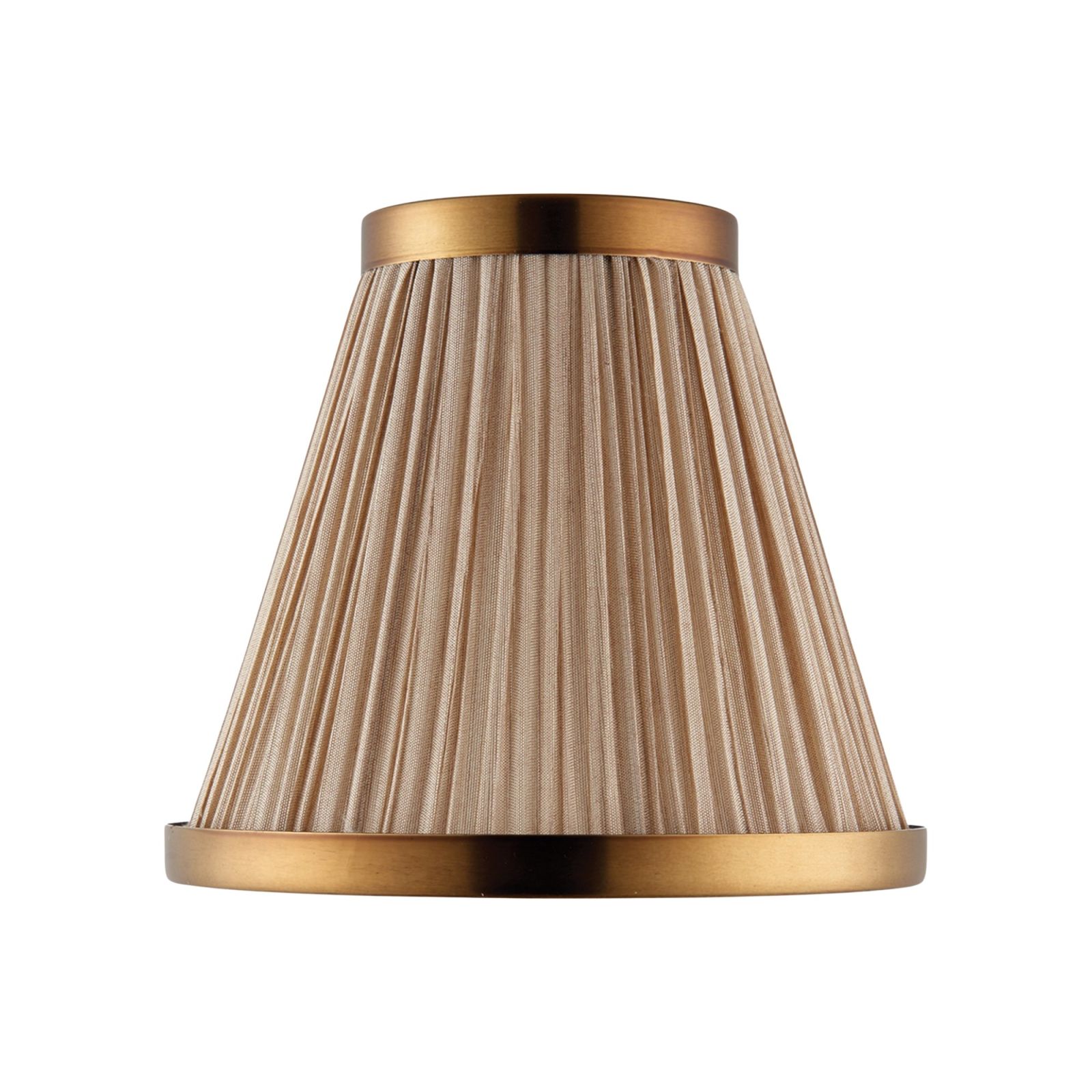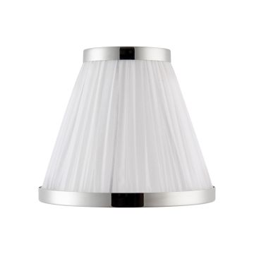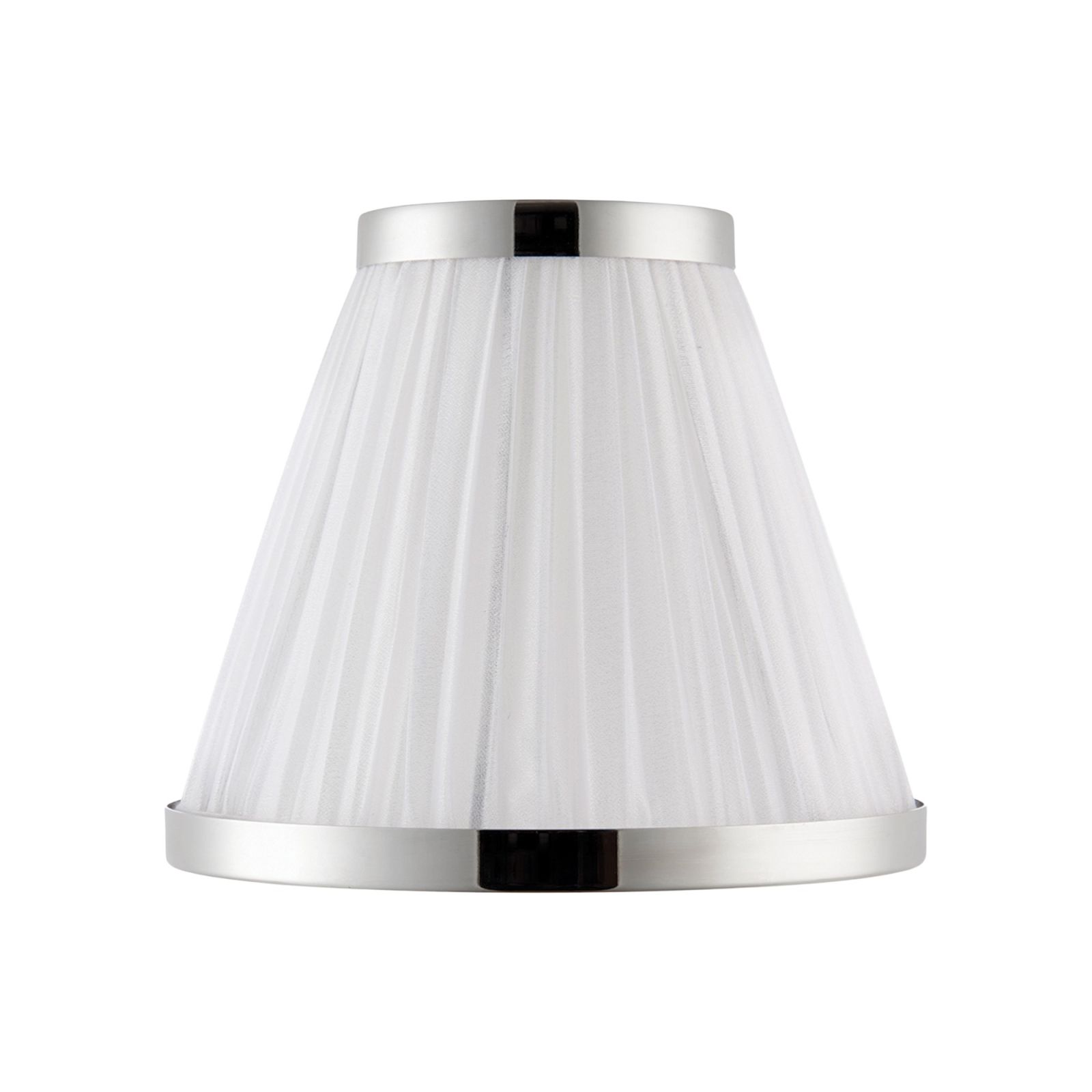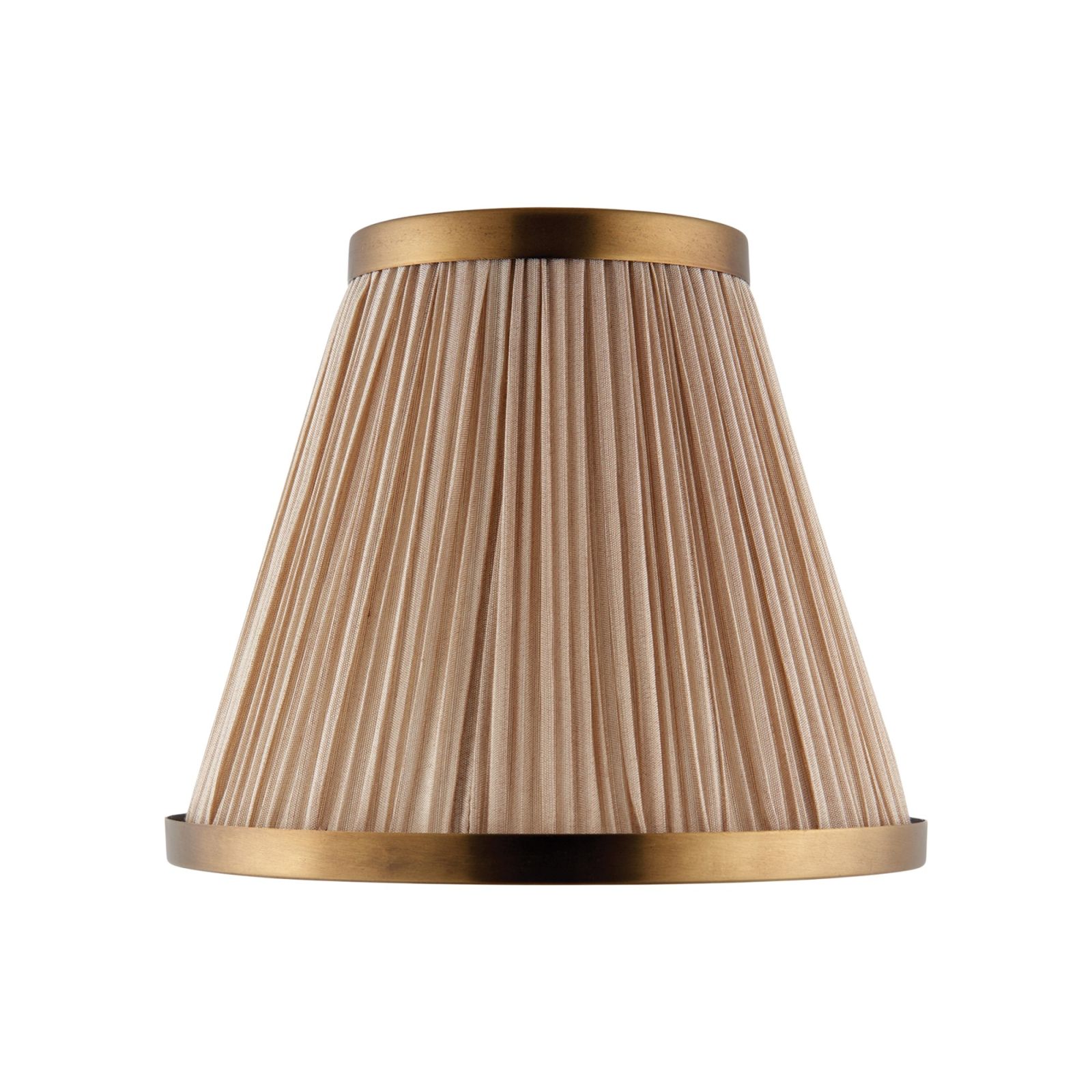 This 6 or 8 inch Suffolk lampshade is crafted from a beige, black, chocolate or white pleated organza effect fabric, with an antique brass or nickel trim