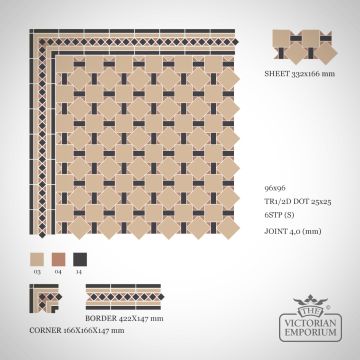 Tallinn Victorian Mosaic Floor Tiles - Centre Pattern 332x166mm sheets for indoor and outdoor use