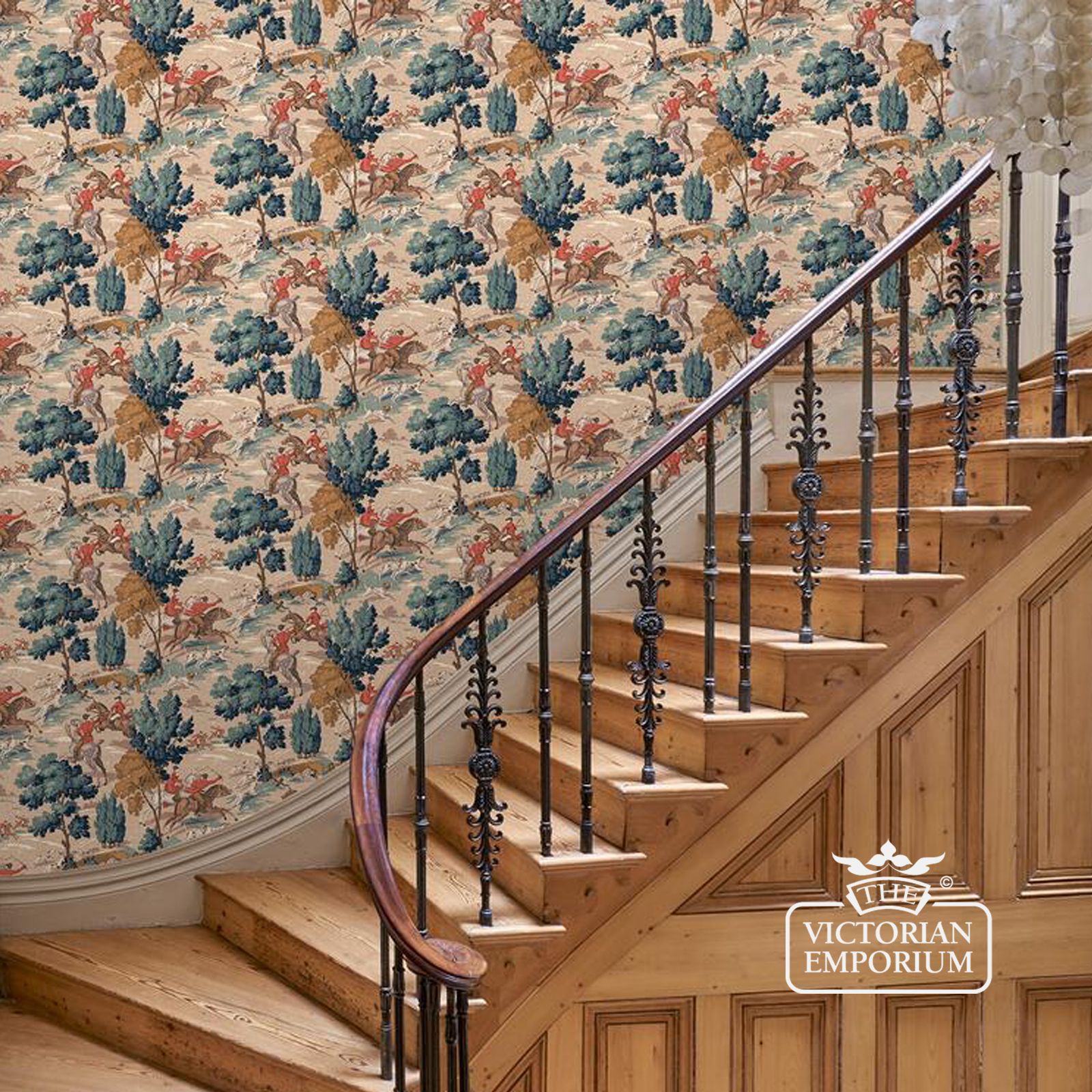 From the Sporting Life collection, this wallpaper showcases the classic British hunt: red coats, hounds and beautiful scenery abound. Shown in fetching Biscuit.