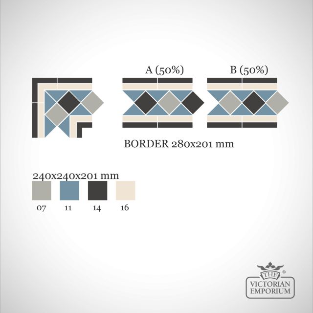 Tampere Victorian Mosaic Floor Tiles - Border and corner sheets for indoor and outdoor use