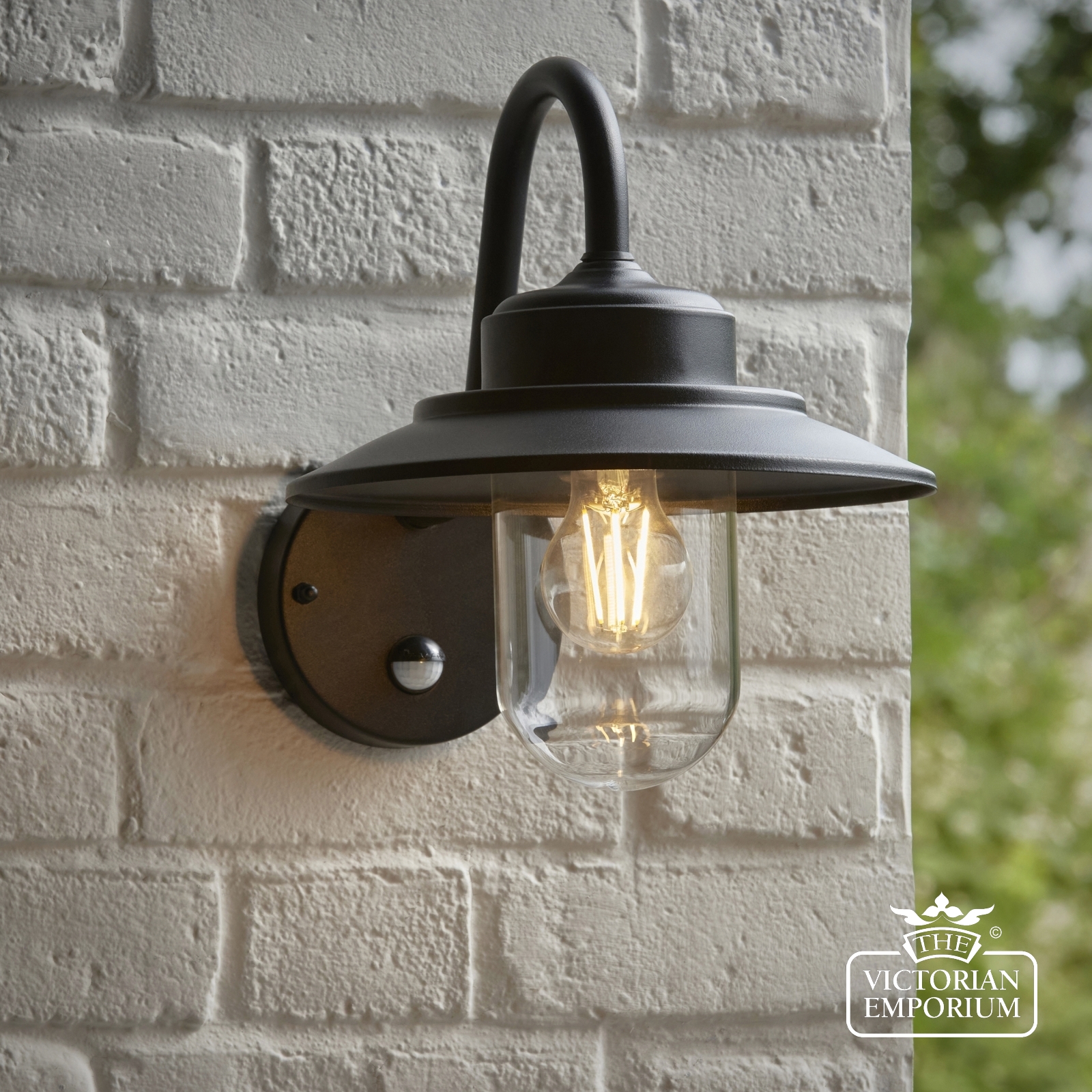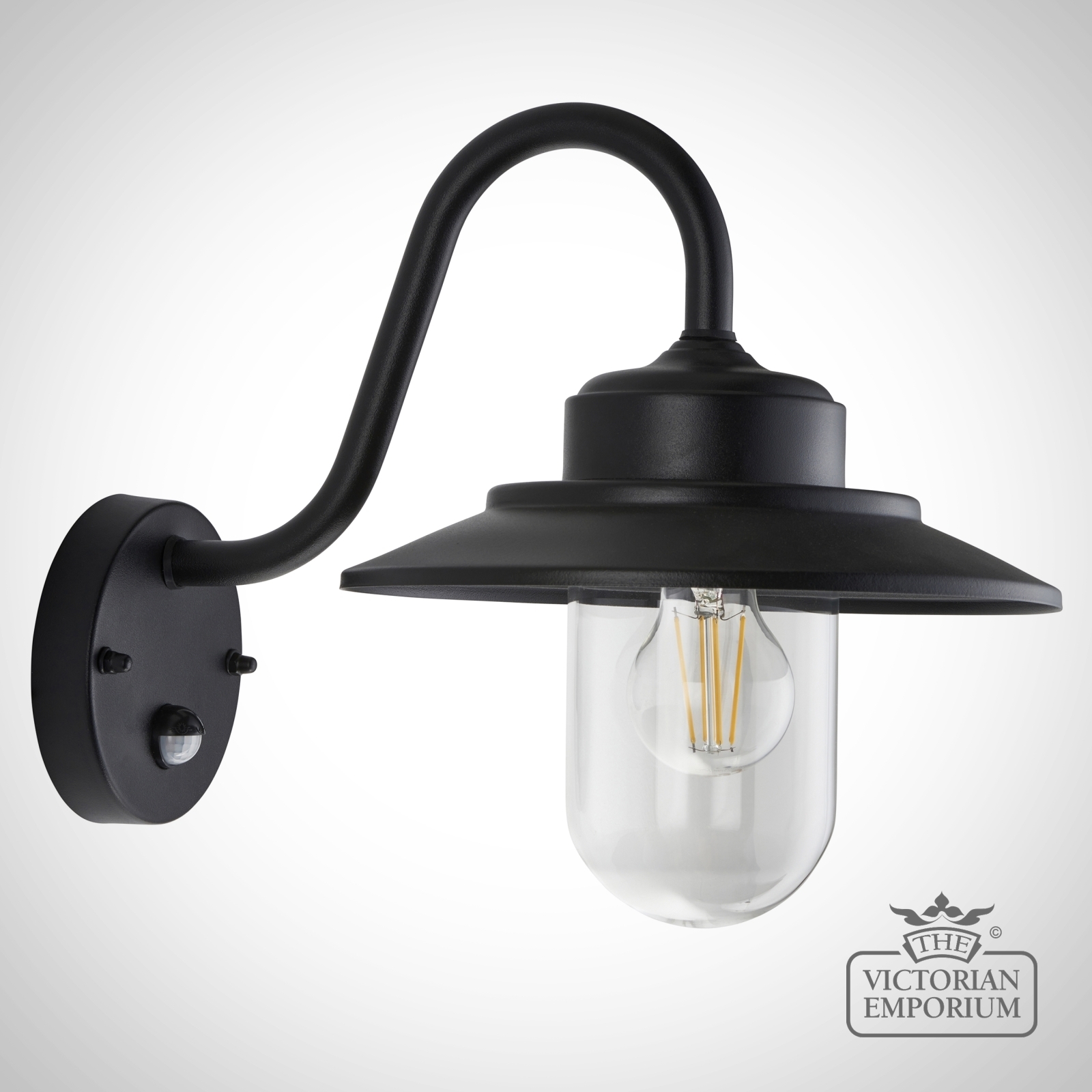 Add security to your outdoor space with this black painted PIR sensor exterior wall light. Inspired by traditional lantern-style fittings, the integrated PIR sensor offers automatic illumination when motion is detected.