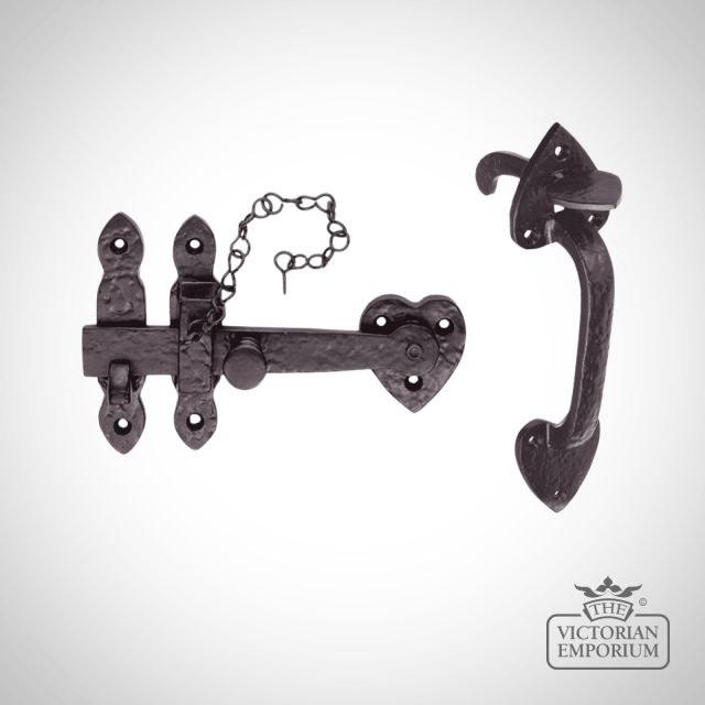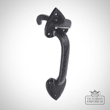 Black Antique traditional basic operation gate latch to suit an old wooden door in a Victorian house. When the thumb latch is depressed this raises the latch bar on the other side of the gate from its keep allowing the gate to open. This comes as a traditional range of furniture with a powder coated Black finish.