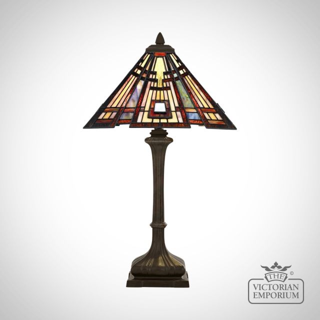 About this Tiffany style light: This beautiful table lamp offers timeless classics to fit your interior design with a Vintage Black finish. Craftsman features wonderful red wine tones in a very intricate colourful geometric design