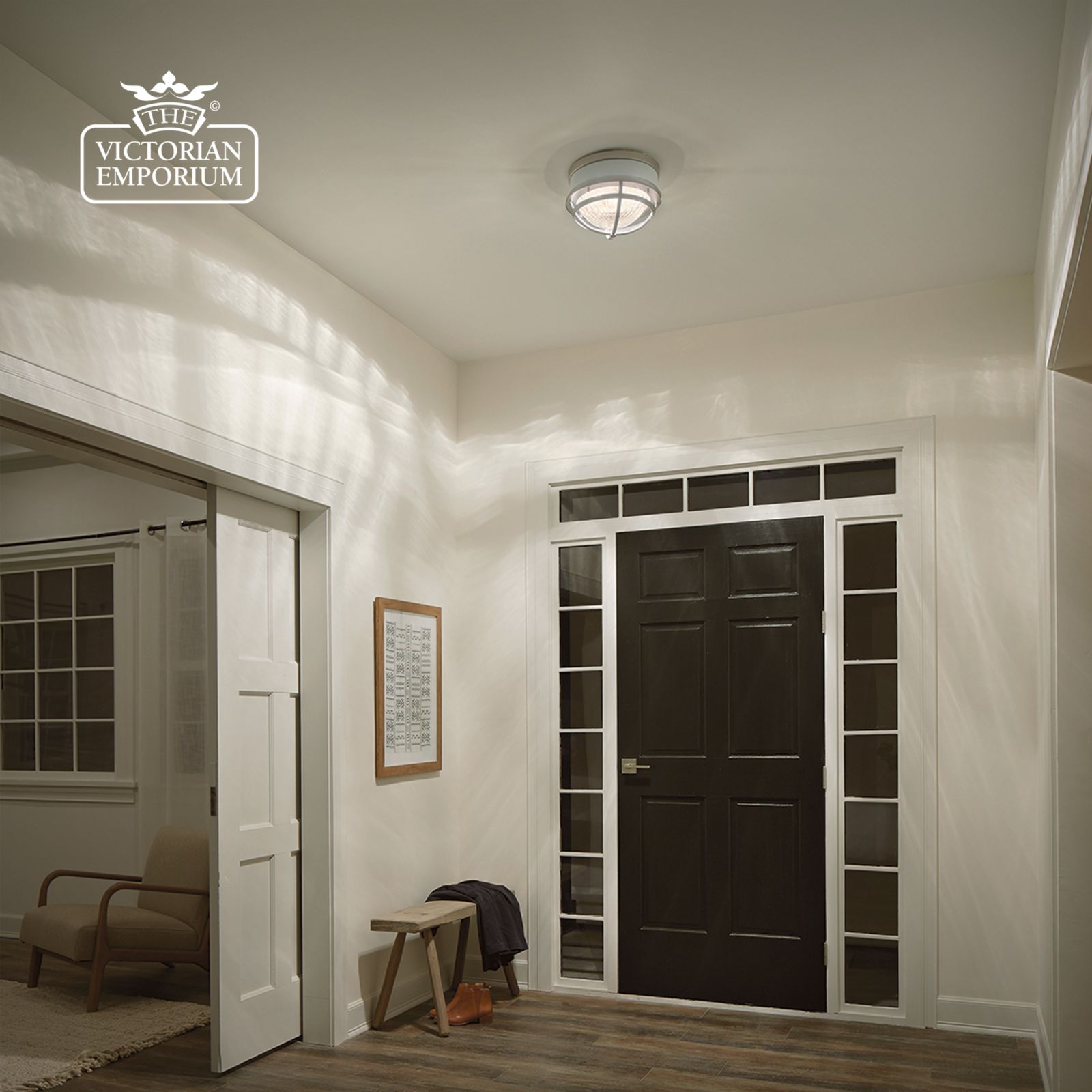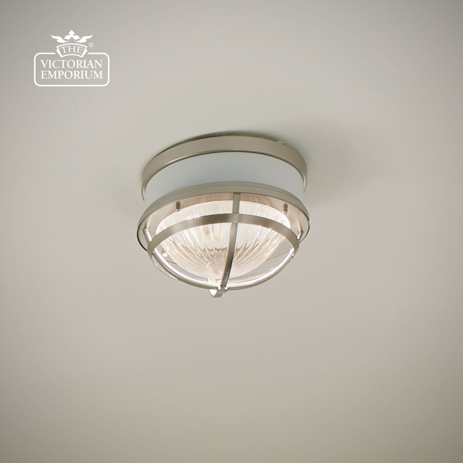 This stylish range is avaialble in Natural Brass or Brushed Nickel & White, a modern design with nautical inspiration and high gloss white dome shades.