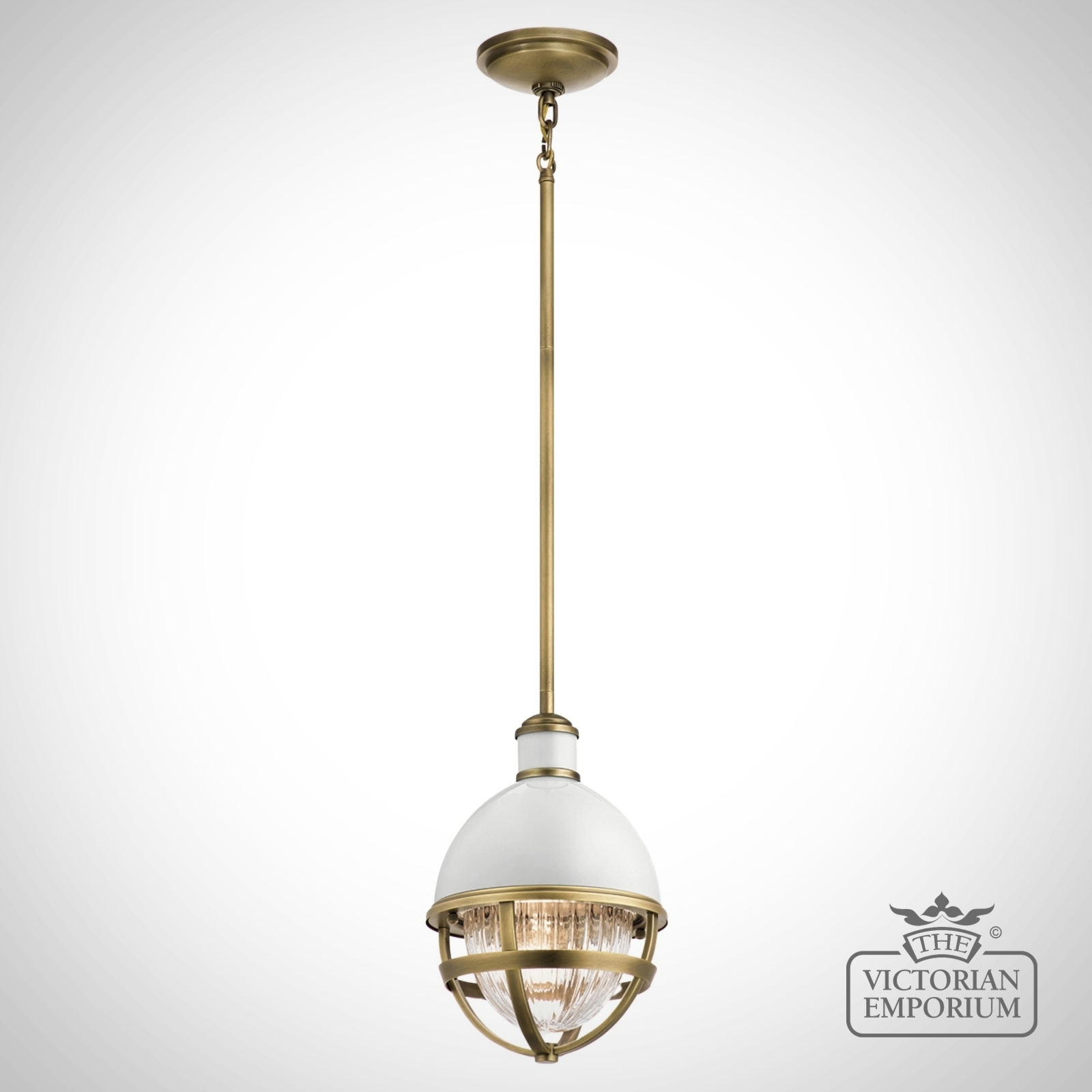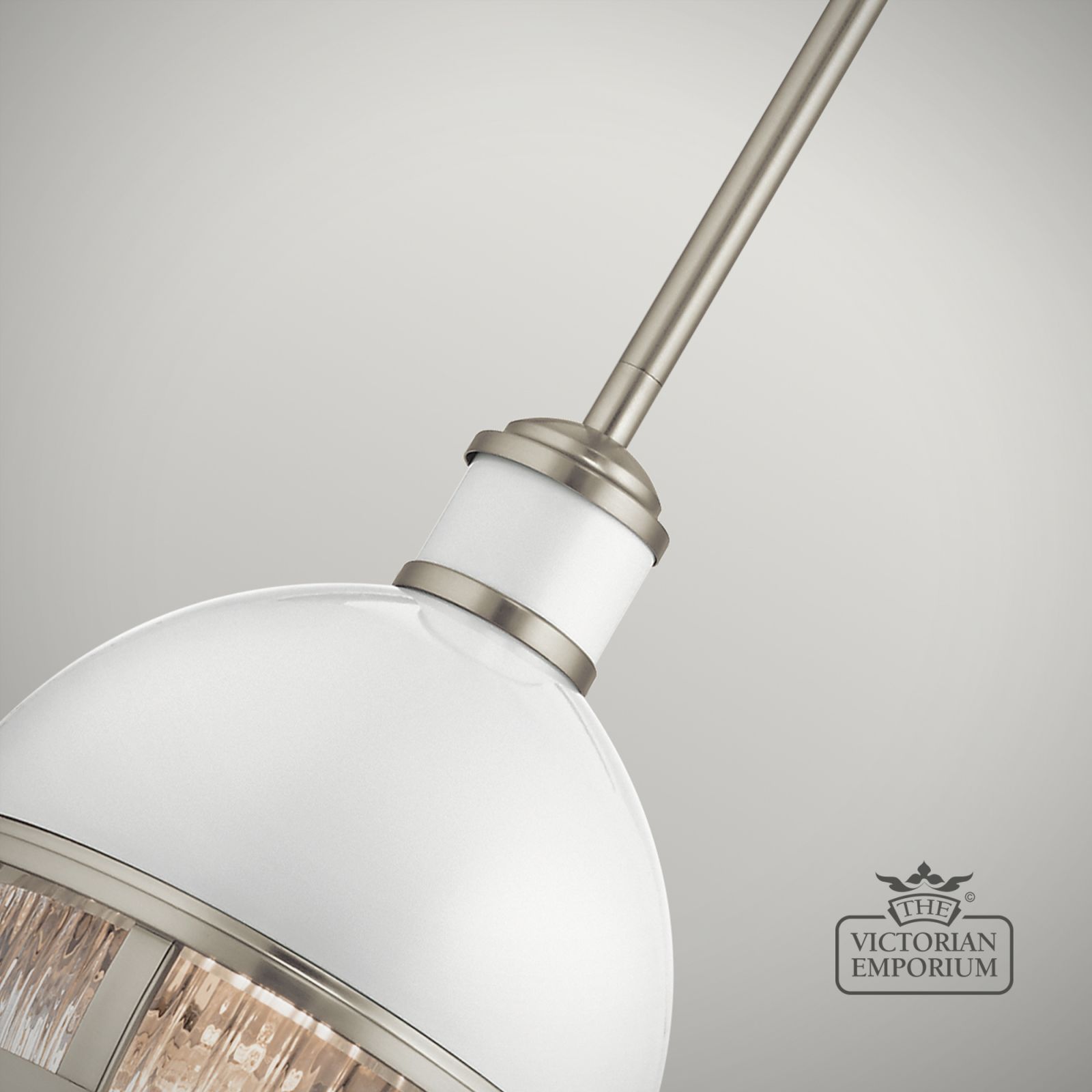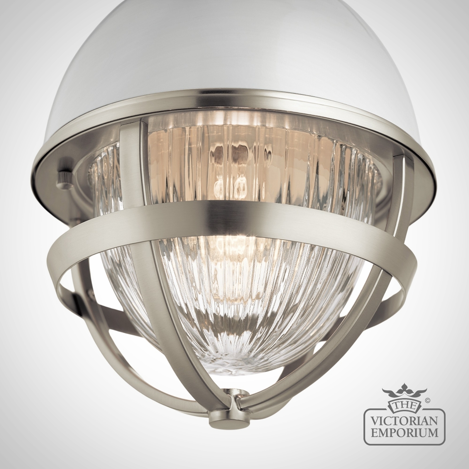 This stylish range is avaialble in Natural Brass or Brushed Nickel & White, a modern design with nautical inspiration and high gloss white dome shades.