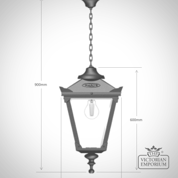 This is a beautiful heritage cast iron and glass lantern in a really traditional Victorian shape with the flexibility of 2 size options hung off a ceiling chain.