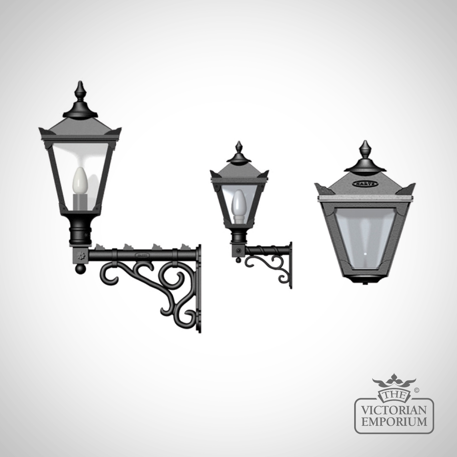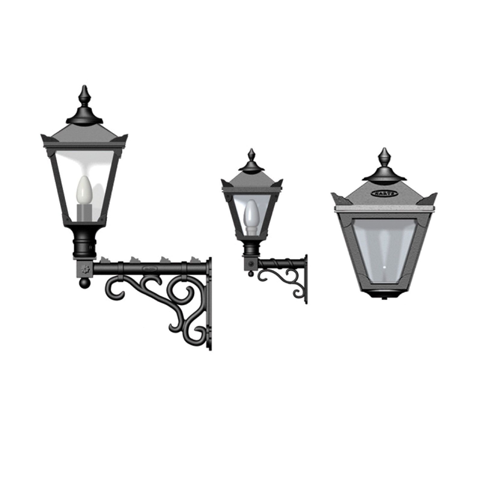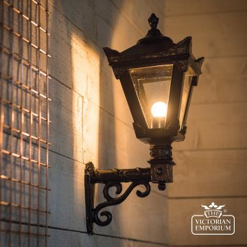 This is a beautiful heritage cast iron wall bracket topped with a cast iron lantern in a traditional shape with the flexibility of 3 size options.