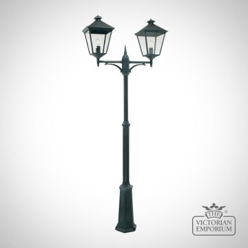 The Turin double lamp post is traditional in style with black and gold lanterns. This range has impressive durability, perfect for locations with severe weather