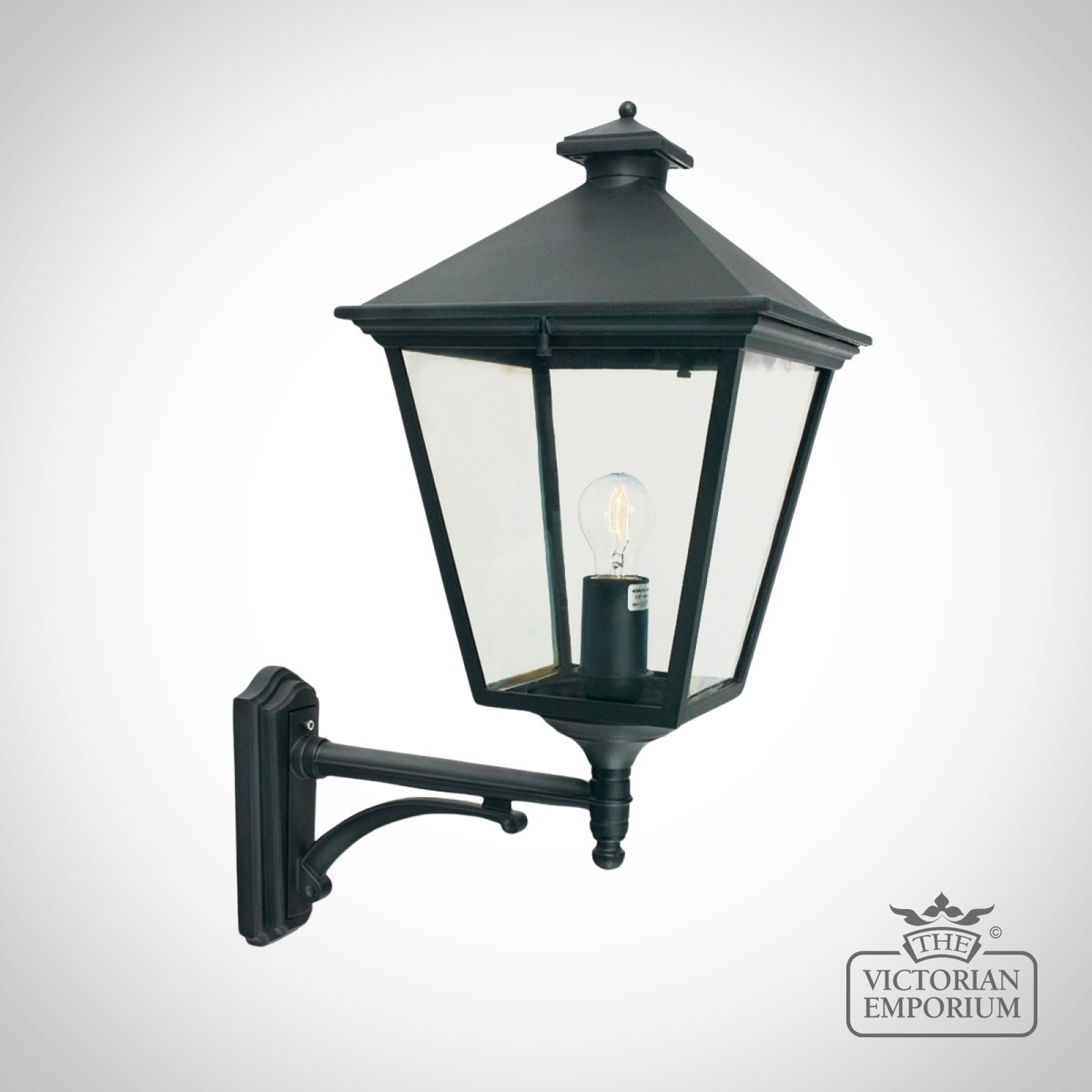 A traditional black wall lantern with great durability, perfect for coastal properties