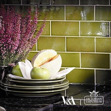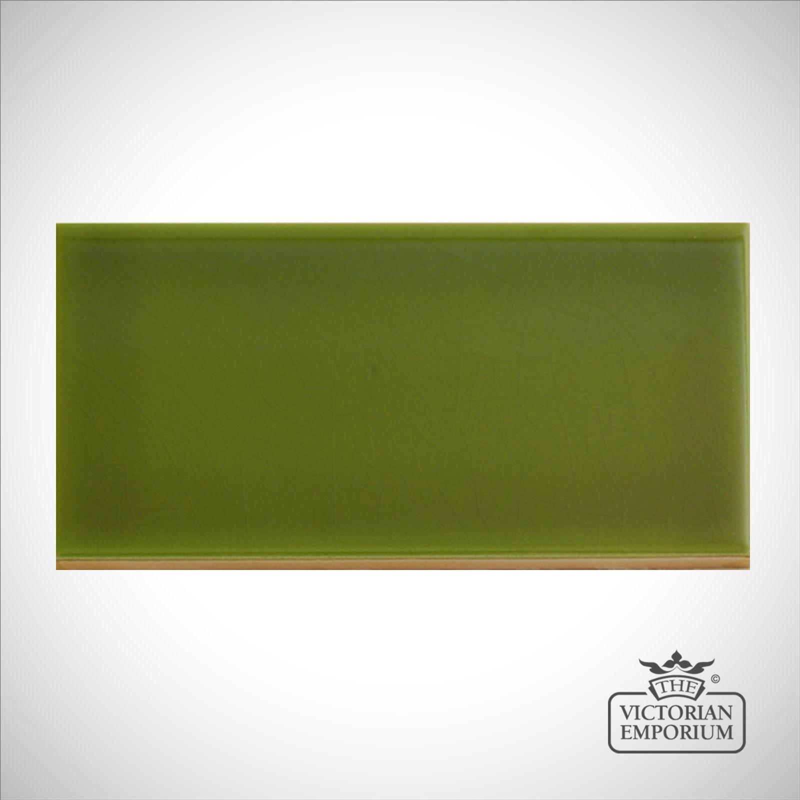 V&A Collection puddle glazed tile in Olive 152x76mm
