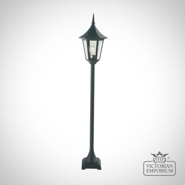 This is a very elegant pillar lantern with a tall spire giving it height and presence in all outdoor locations, made from die cast Aluminium, powder coated