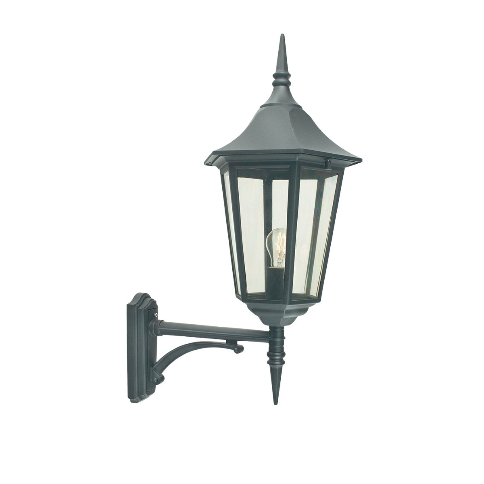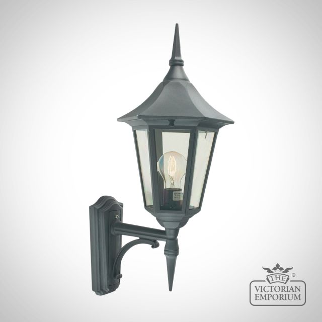 This is a very elegant wall lantern with a pointed top giving it height and presence in all outdoor locations, made from die cast Aluminium, powder coated
