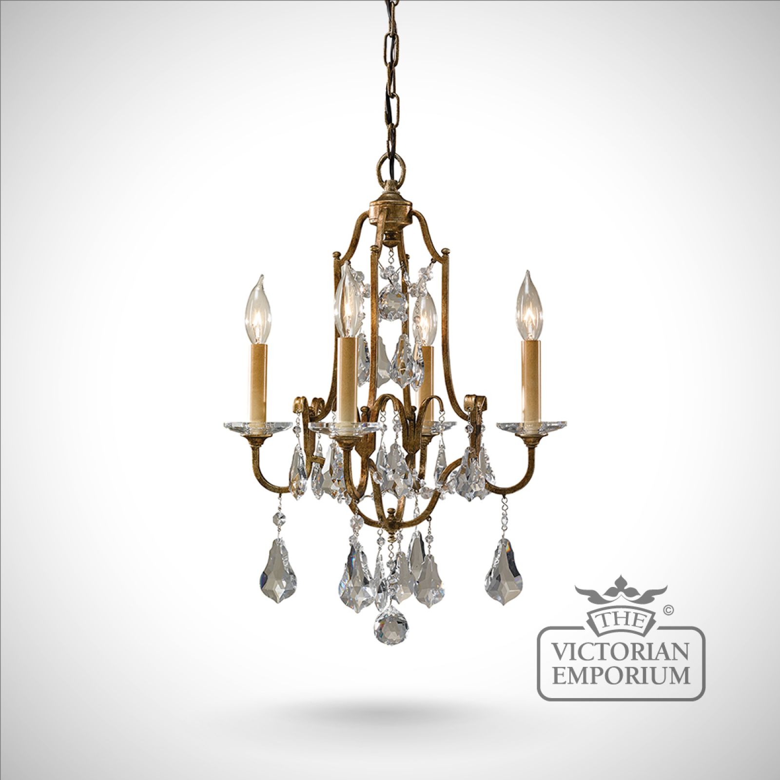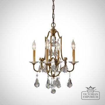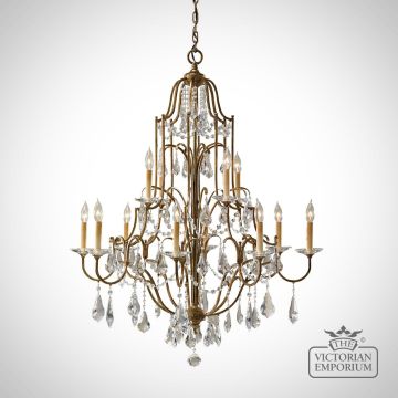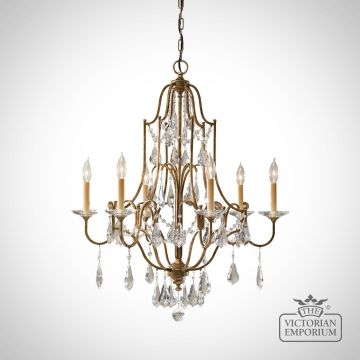This chandelier has a turn of the century influence in it's design with a frame finished in Oxidised Bronze with clear polished glass crystals.