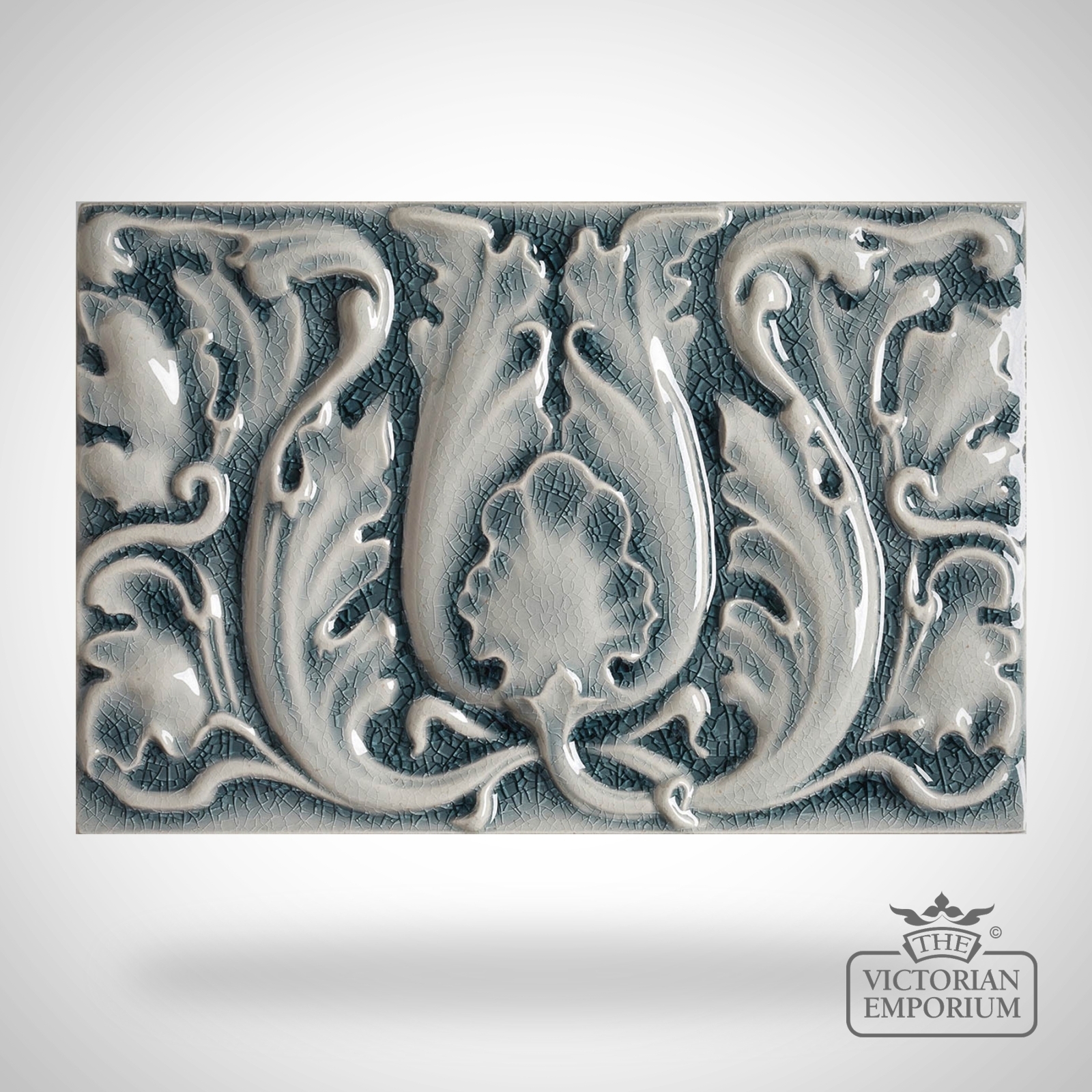 Decorative exterior or interior use Victorian wall tiles in relief pattern with Acanthus Decor single coloured design