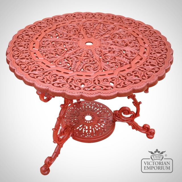 Made in cast aluminium and powder coated for a durable finish, in a choice of colours. The perfect table for outdoor dining at all times of year.