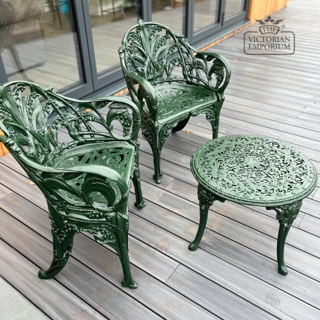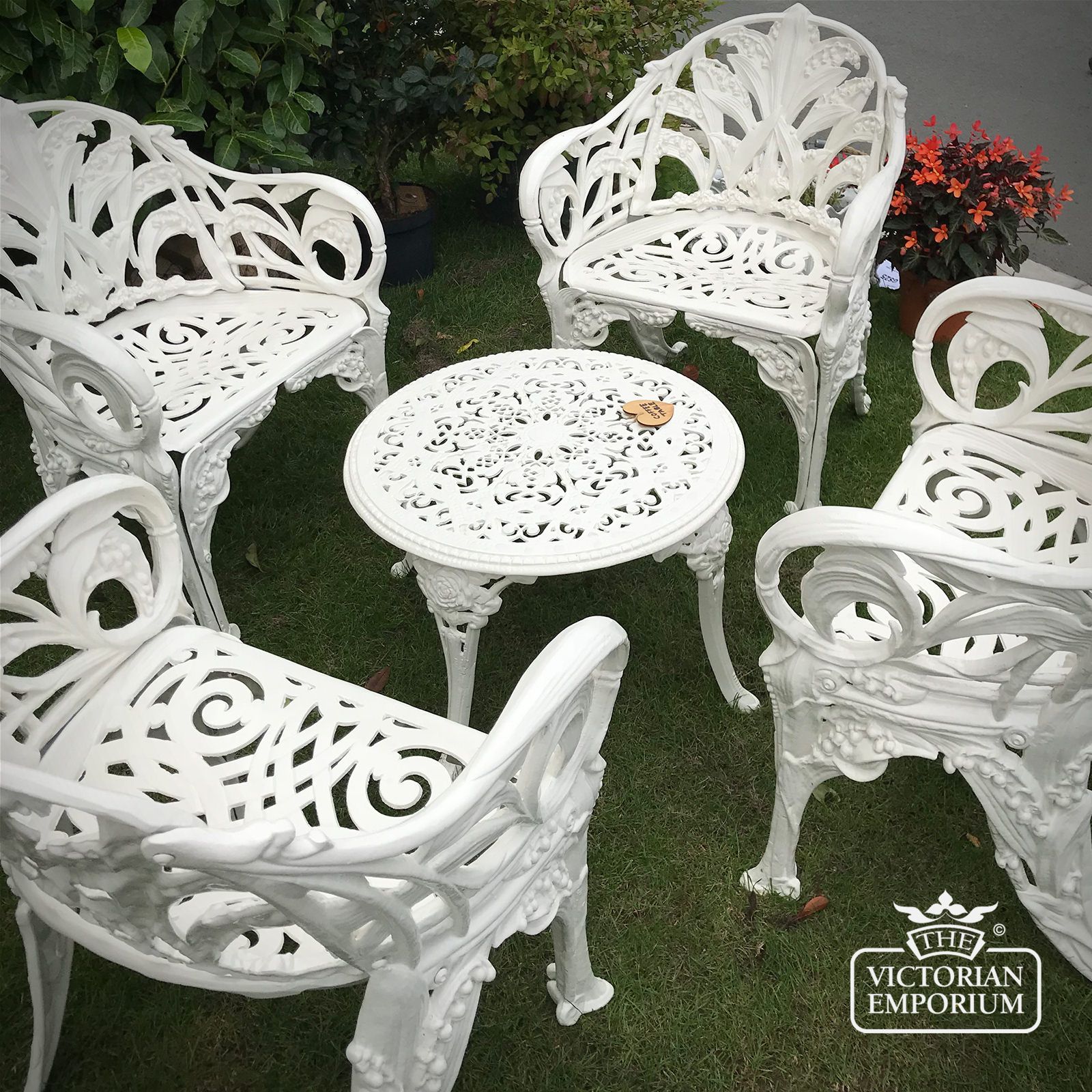Available in green, white, stone white, bronze, black, antique silver, & lichen. Chairs not included and sold separately.