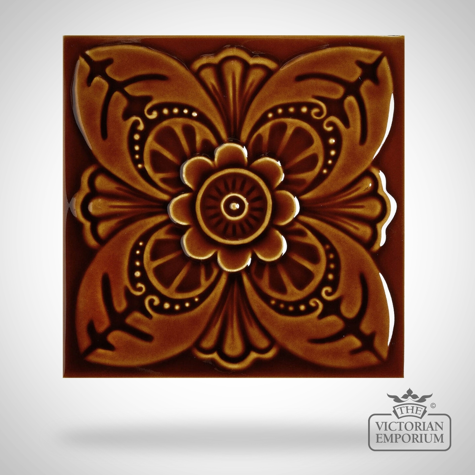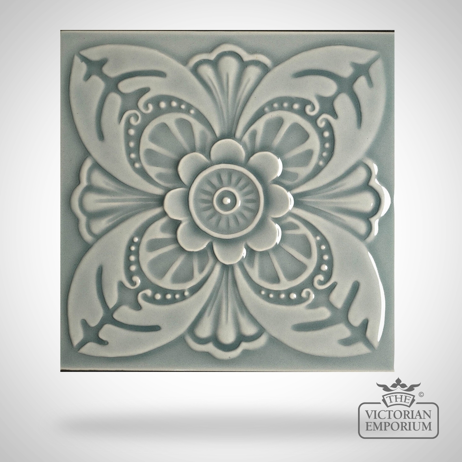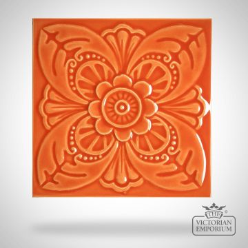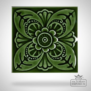 Decorative exterior use Victorian wall tiles in relief pattern with Harrogate single coloured design