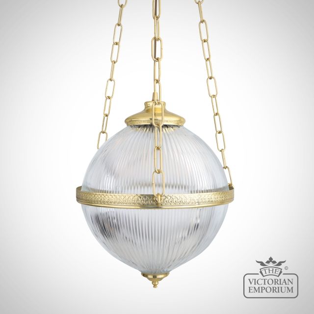 Designed as a reproduction of traditional Victorian pendants and its Holophane glass shade is designed to refract light. Suitable for wide range of settings, this Holophane pendant light looks great when lit with a warm bulb for a soft lighting. Bulbs are sold separately.