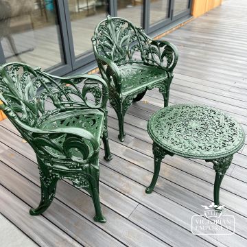 This garden chair design is a replica from the Coalbrookdale collection from the 1800's.