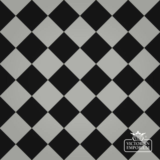 Blue/Grey and black floor Victorian Path tiles making up a chequerboard pattern. Can also be turned 45 degrees to make a diamond pattern.
