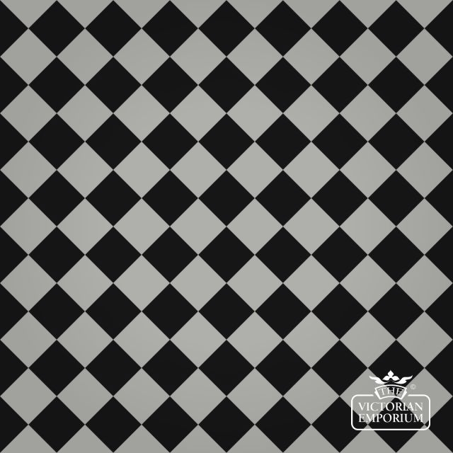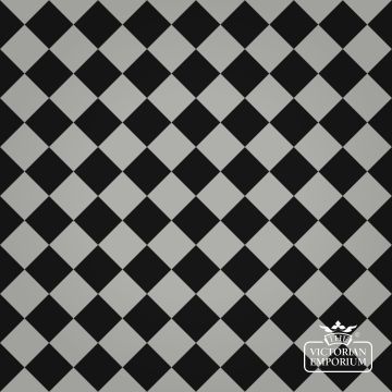 Black and blue/grey floor Victorian Path tiles making up a chequerboard pattern. Can also be turned 45 degrees to make a diamond pattern.
