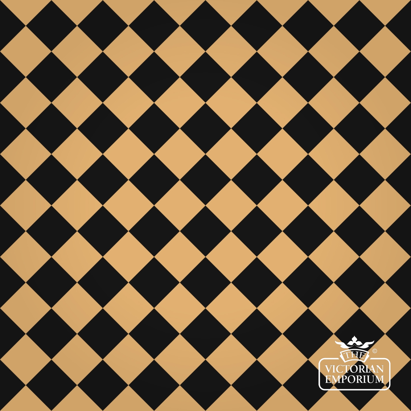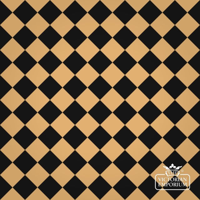 Black and cognac floor Victorian Path tiles making up a chequerboard pattern. Can also be turned 45 degrees to make a diamond pattern.