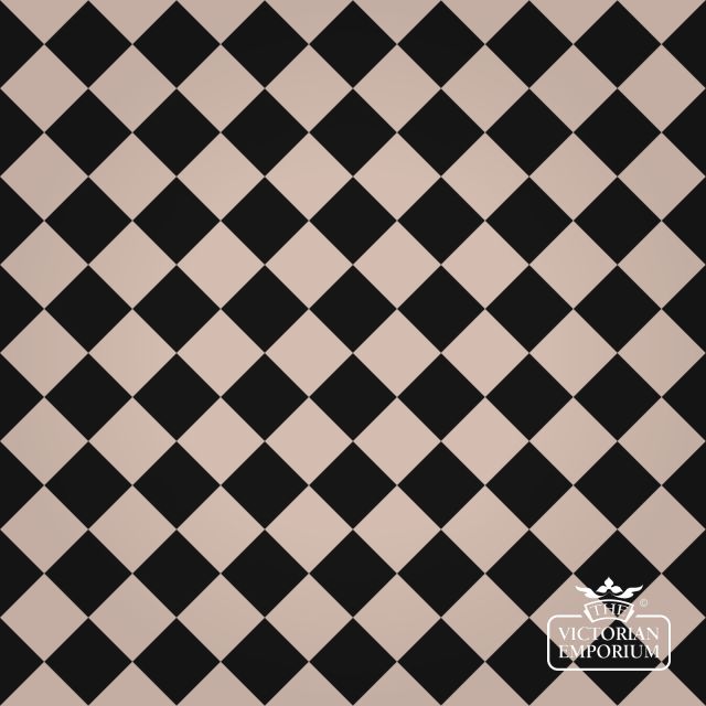 Black and light pink floor Victorian Path tiles making up a chequerboard pattern. Can also be turned 45 degrees to make a diamond pattern.