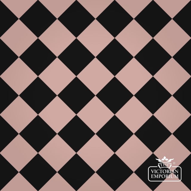 Pink and black Victorian Path tiles making up a chequerboard pattern. Can also be turned 45 degrees to make a diamond pattern.