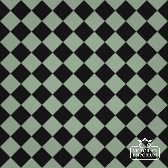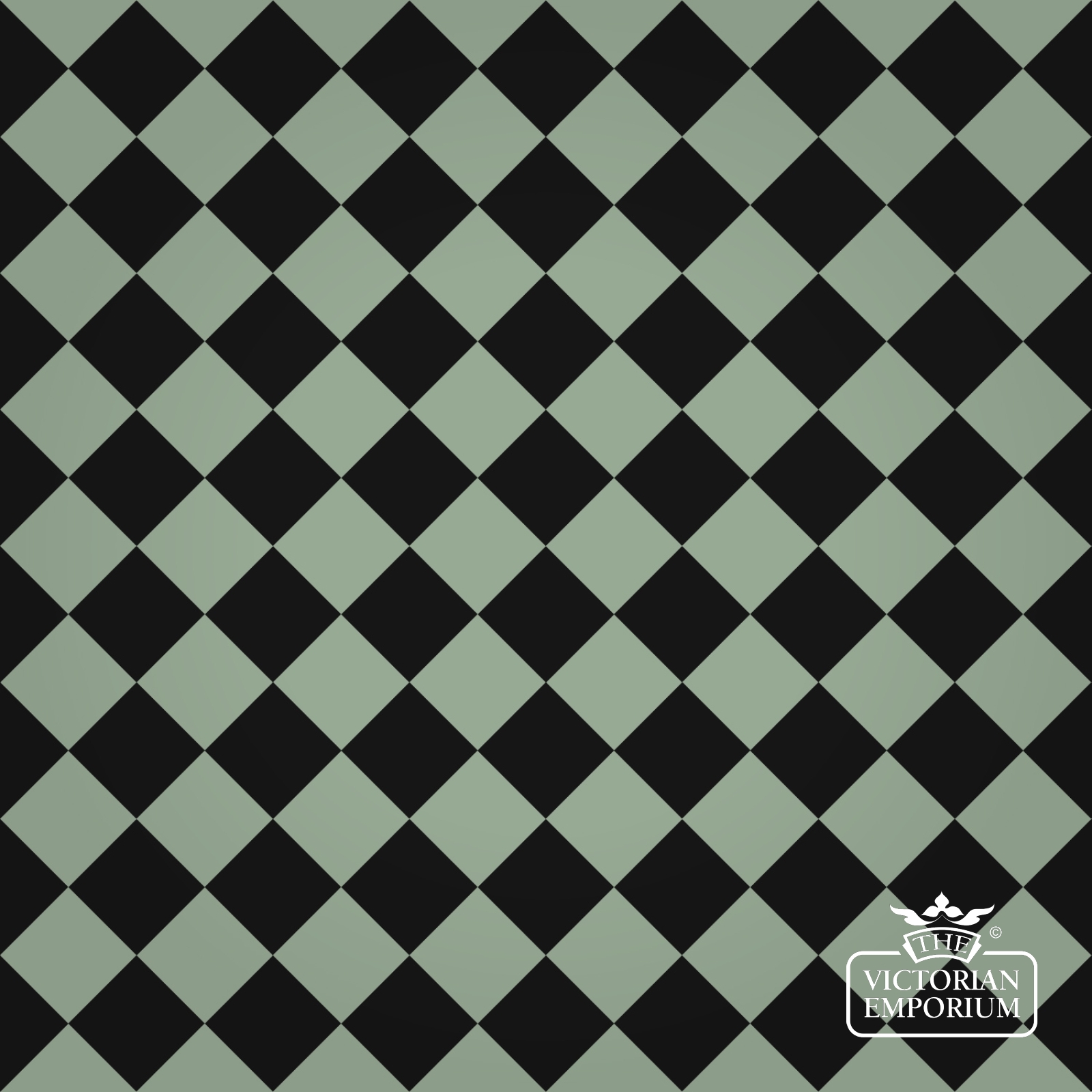 Black and sage floor Victorian Path tiles making up a chequerboard pattern. Can also be turned 45 degrees to make a diamond pattern.